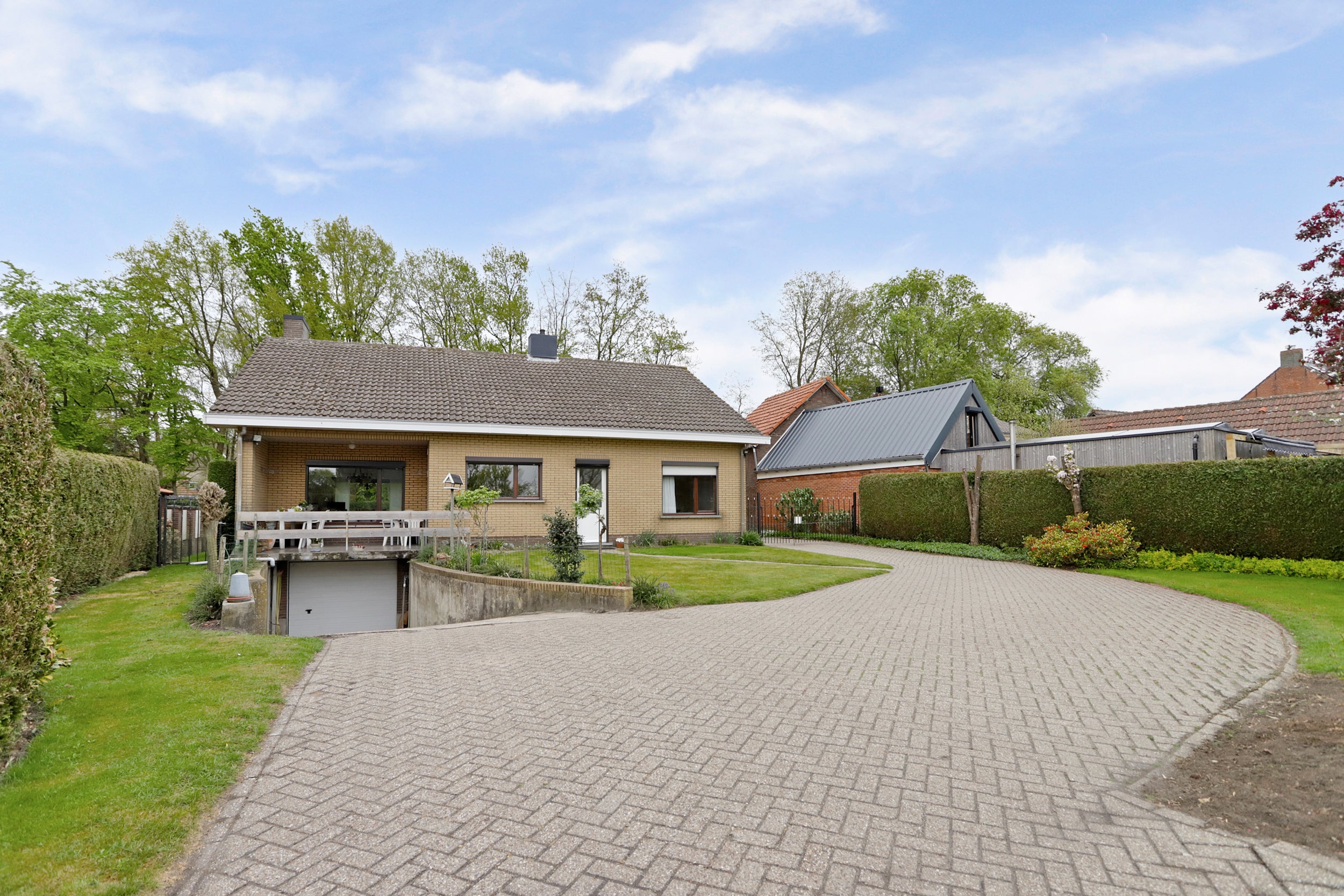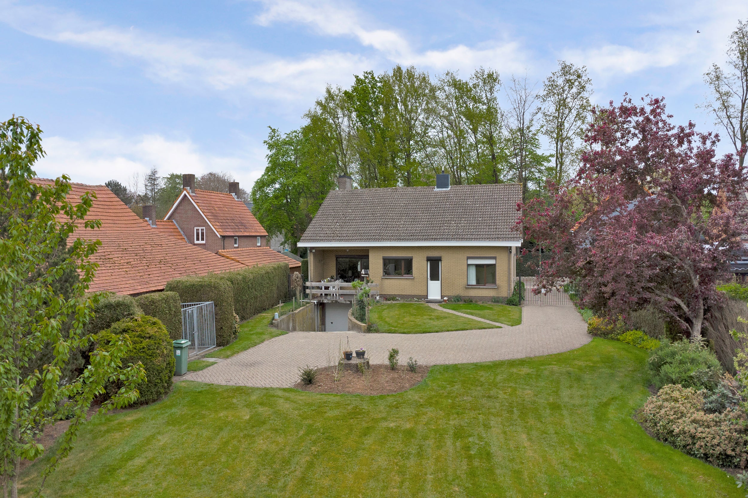 Gelegen aan de rand van Baarle-Nassau, vlakbij voorzieningen zoals supermarkten en scholen, geniet u van de rustige omgeving. De tuin rondom is diep en biedt privacy, met een prachtig uitzicht over de landerijen. De garage is inpandig en geschikt voor twee auto's. De woning is van 1975 en goed onderhouden. Hier kunt u volop genieten van de natuur en het buitenleven.