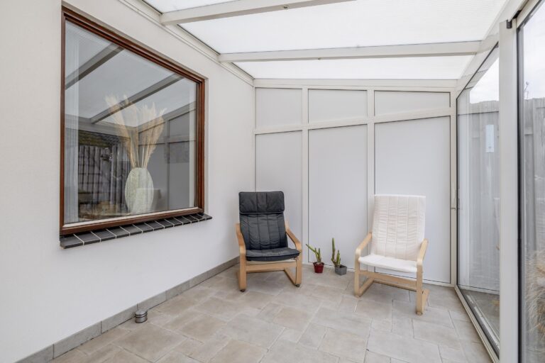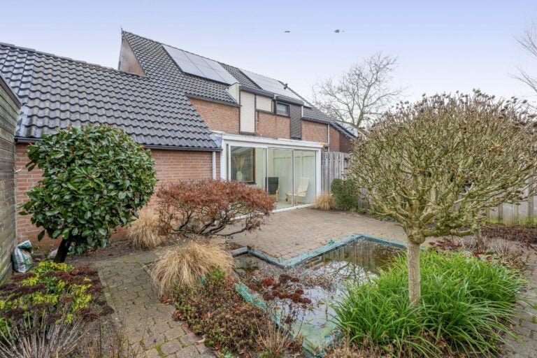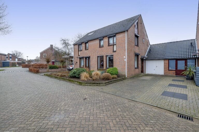 In een rustige en gezellige woonwijk bevindt zich deze goed onderhouden 2 onder 1 kapwoning. De woning heeft een serre, een eigen oprit voor twee auto’s en een ruime garage. Bij binnenkomst kom je in een hal met meterkast en toiletruimte. De L-vormige woonkamer heeft een houten vloer en biedt uitzicht op het groen van een parkje. De halfopen keuken is uitgerust met een 4-pits gasfornuis, vaatwasser en koelkast. Van daaruit heb je toegang tot de serre en de zonnige, deels betegelde tuin met vijver.