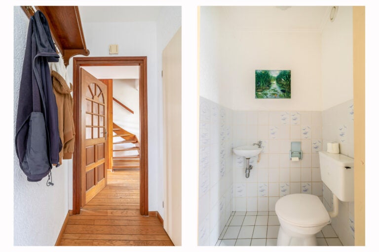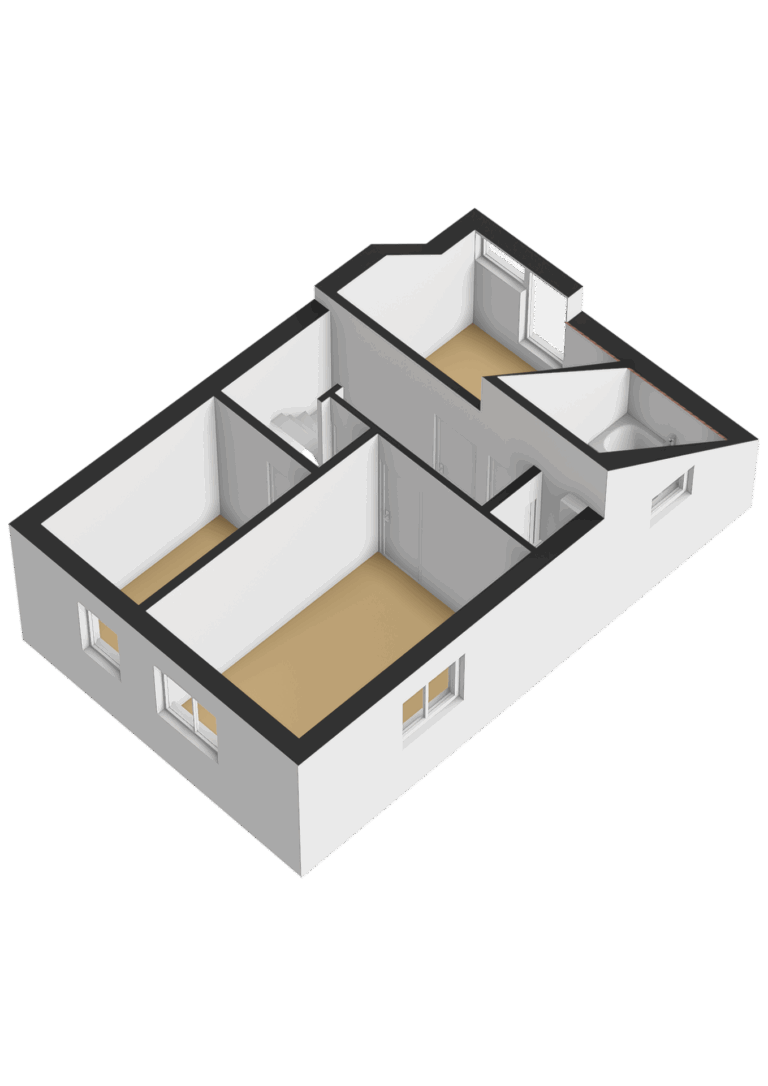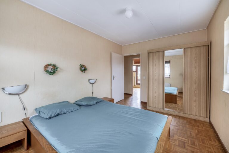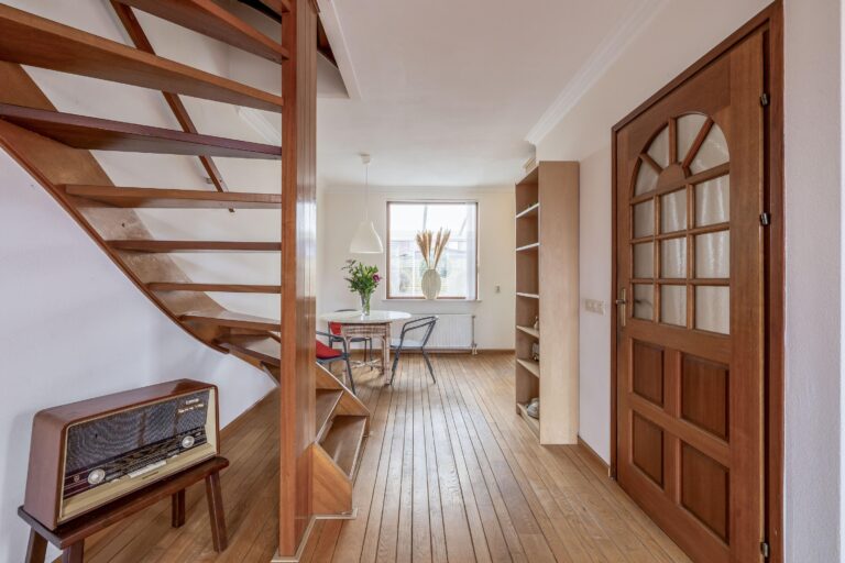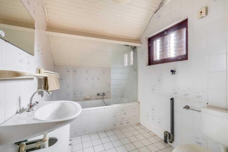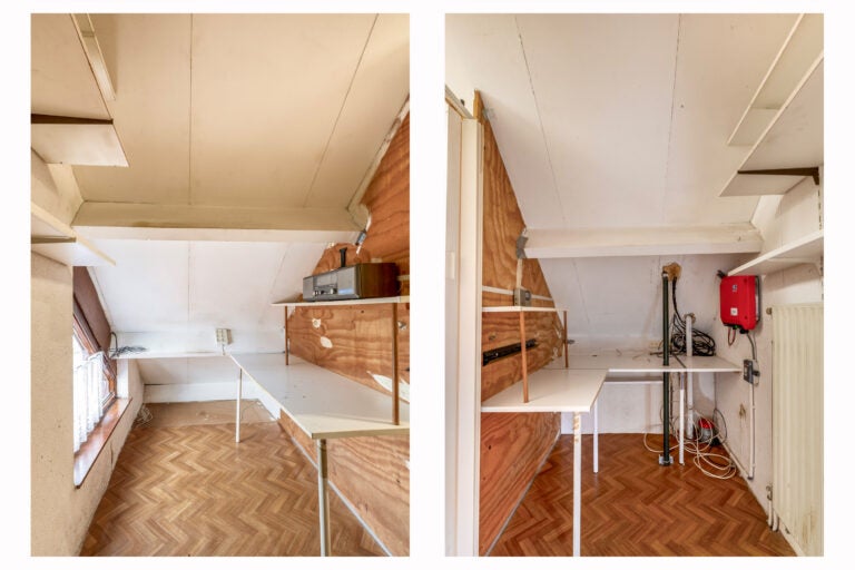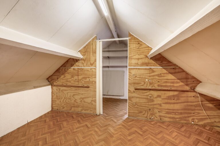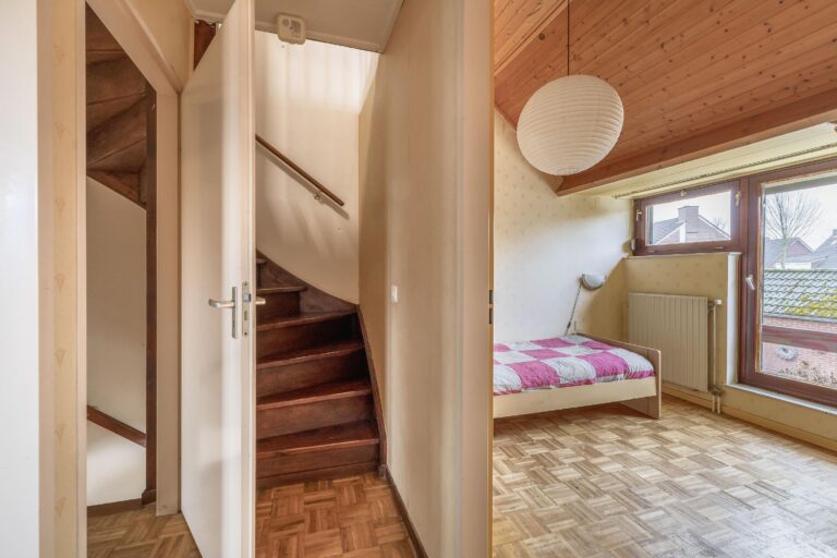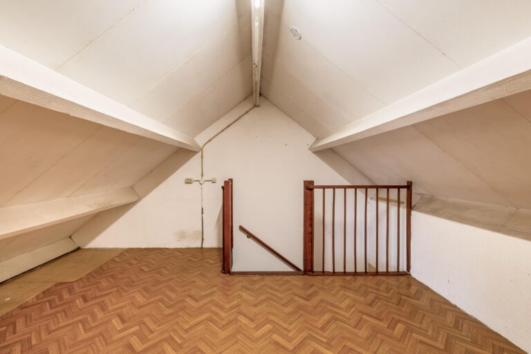 Boven zijn drie slaapkamers met rolluiken en een eenvoudige badkamer. Een vaste trap leidt naar de zolder, die als hobbyruimte is ingericht maar kan dienen als 4e slaapkamer. De woning beschikt verder over 6 zonnepanelen, een Atag CV-ketel uit 2024 en is gedeeltelijk geïsoleerd.