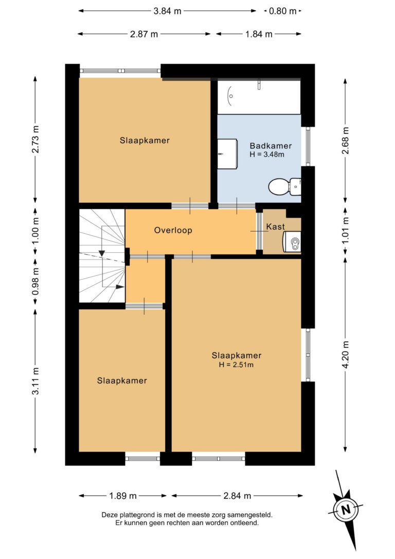 - De tussenwoning heeft een woonoppervlakte van 90 m² en beschikt over 5 kamers, waarvan 4 slaapkamers;
