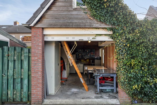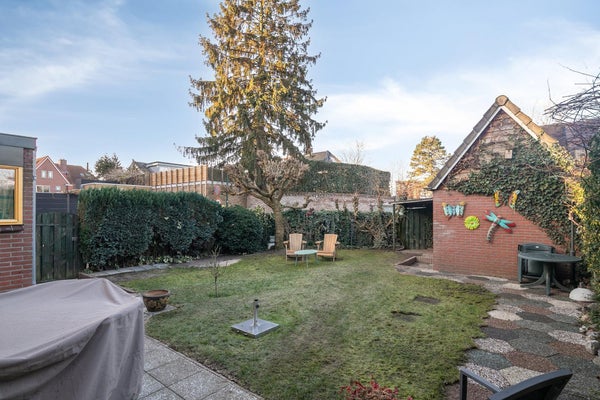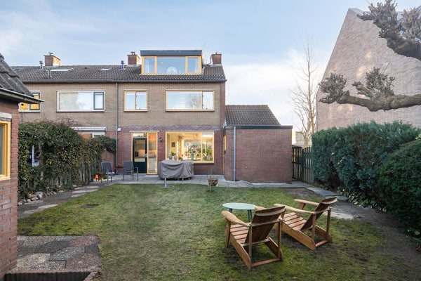 Achter de woning ligt een fijne, beschutte tuin waar je in alle rust kunt genieten. Direct achter het huis is een zonnig terras, perfect voor lange zomeravonden, spelende kinderen of een barbecue met vrienden. De tuin is netjes aangelegd, biedt veel privacy door de erfafscheiding en beschikt over een stenen garage en een achterom.
