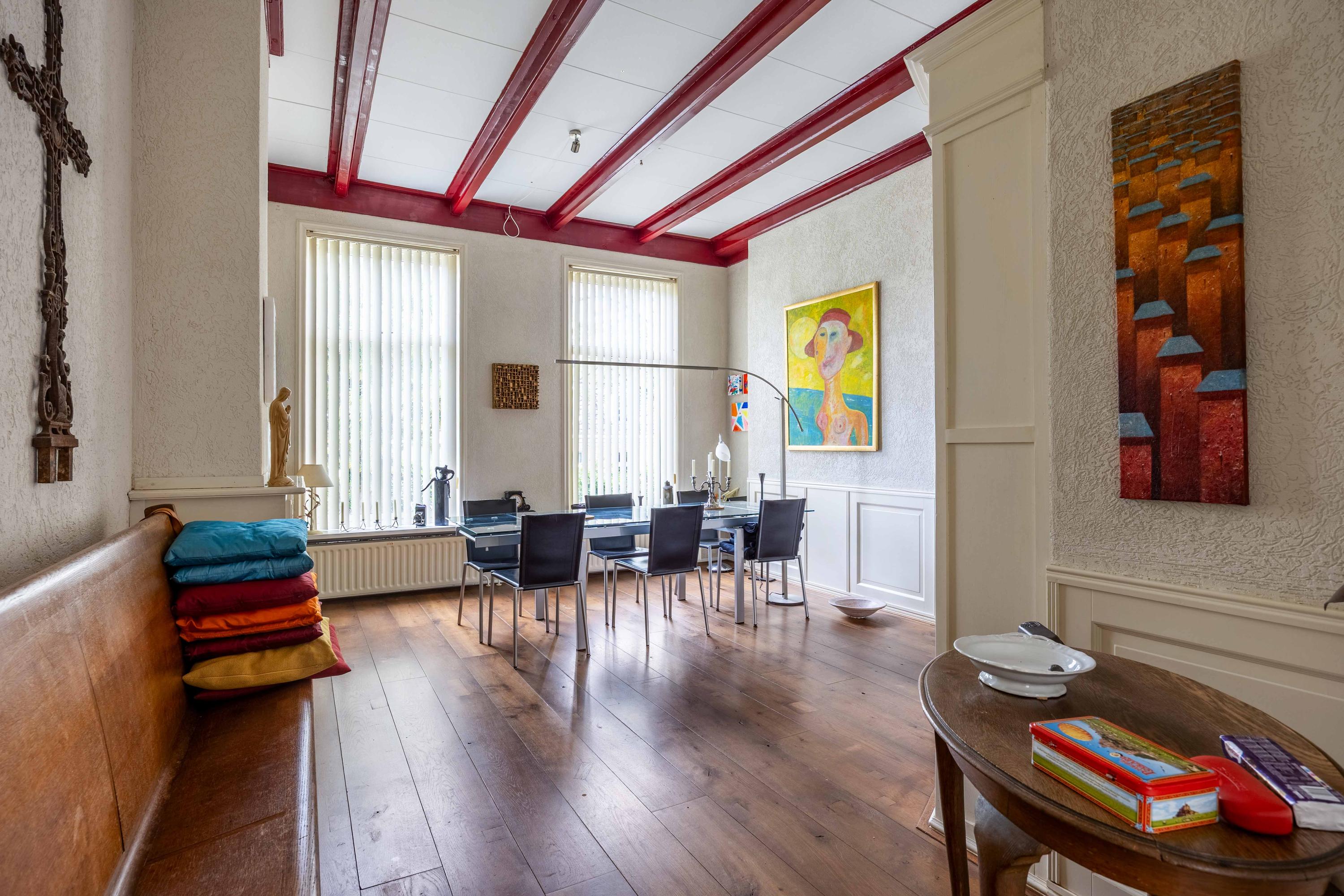 Dit royale herenhuis in het dorp Baflo heeft een woonoppervlak van 214 m² en staat op een perceel van 400 m². De begane grond biedt een ruime woonkamer van 43,5 m² met speksteenkachel, een eetkamer van 22 m² en een half-open keuken met moderne apparatuur. Daarnaast zijn er een badkamer met inloopdouche, ligbad en dubbele wastafel, en een aangebouwde garage van 41,3 m². Op de verdieping bevinden zich vier slaapkamers, variërend van 10 m² tot 19,4 m², en een toiletruimte. De tweede verdieping biedt extra bergruimte. De achter- en zijkant van de woning heeft een serre van 11,9 m². De woning is CV-verwarmd en heeft 5 zonnepanelen. Supermarkt en treinstation zijn op loopafstand.