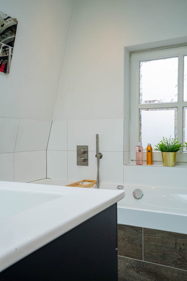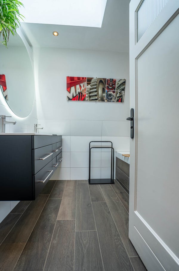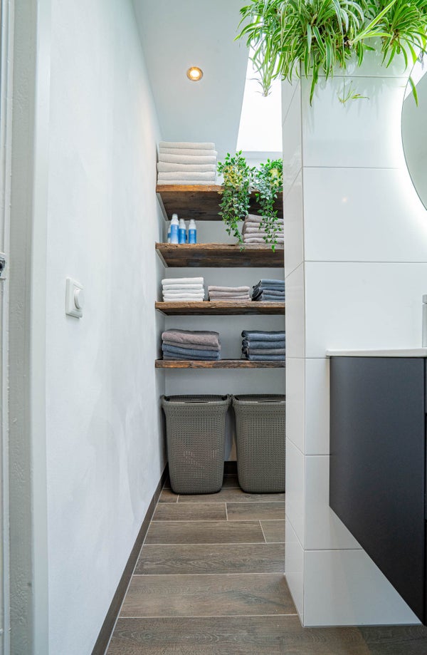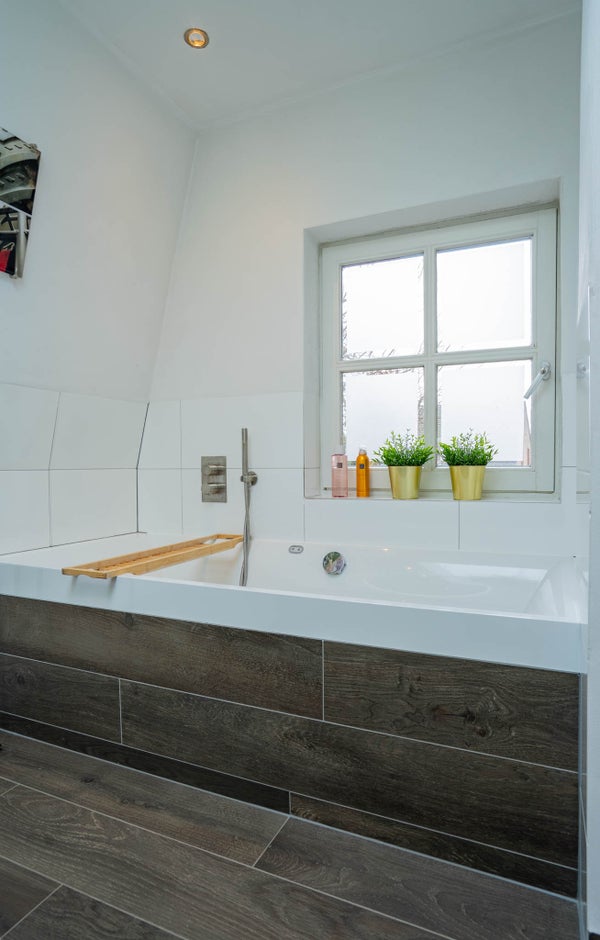 De badkamer is modern en verzorgd uitgevoerd, grotendeels betegeld en deels gestuukt, en beschikt over een modern bubbelbad, inloopdouche en een dubbele wastafel met meubel. Dankzij het raam is er prettig daglicht en natuurlijke ventilatie aanwezig. Het toilet is separaat. Uiteraard kan deze verdieping ook eenvoudig worden heringedeeld tot drie of zelfs vier slaapkamers, afhankelijk van uw woonwensen.