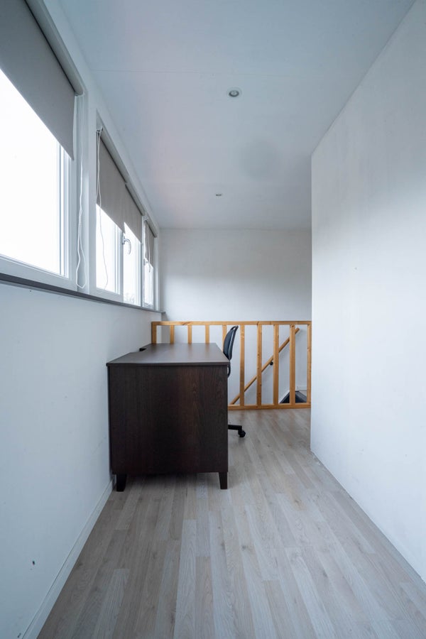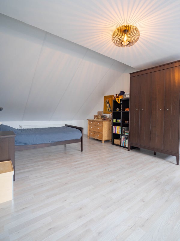 Via een vaste trap bereikt u de tweede verdieping. Ook hier wordt u verrast door de hoeveelheid ruimte. Op deze verdieping bevinden zich twee zeer grote slaapkamers, keurig afgewerkt met laminaatvloeren en gestuukte wanden. Ideaal als extra slaapkamers, werkruimtes of logeerkamers.