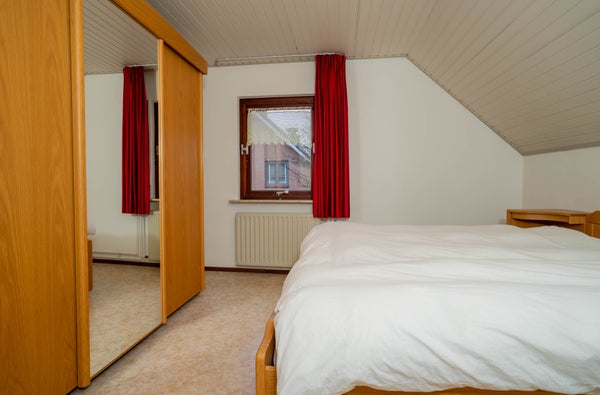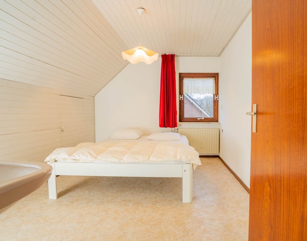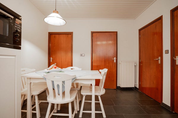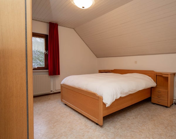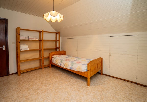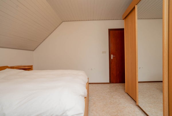 Alle kamers zijn voorzien van vinylvloeren, gestuukte wanden en een wit geschilderd schrootjesplafond. Twee slaapkamers beschikken over een eigen wastafel. Drie kamers hebben, onder het schuine dak, extra opbergruimte — handig voor koffers, speelgoed of seizoensspullen. Het zijn stuk voor stuk kamers van fijn formaat.
