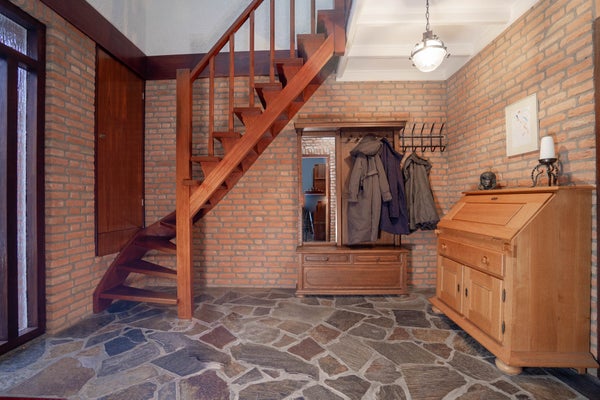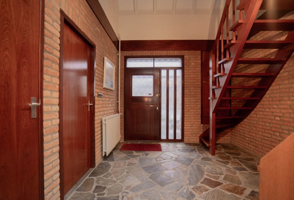 U betreedt de woning via een bijzondere, royale entree met speelse tegelvloer, schoonmetselwerk wanden en een degelijk merbau trappenhuis. Bij binnenkomst ervaart u direct de ruime maatvoering. Vanuit de hal heeft u toegang tot de woonkamer, gesloten keuken, (slaap)kamer op de begane grond en de trapopgang naar de verdieping.