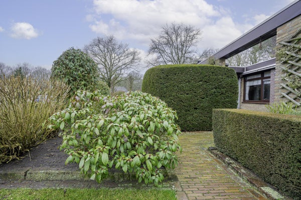 Rondom de woning ligt een groene en fraai aangelegde tuin met veel privacy. De achterzijde is vrij gelegen, waardoor u geen inkijk heeft en optimaal kunt genieten van de rustige, bosrijke omgeving. Een heerlijke plek om buiten te zitten en tot rust te komen.