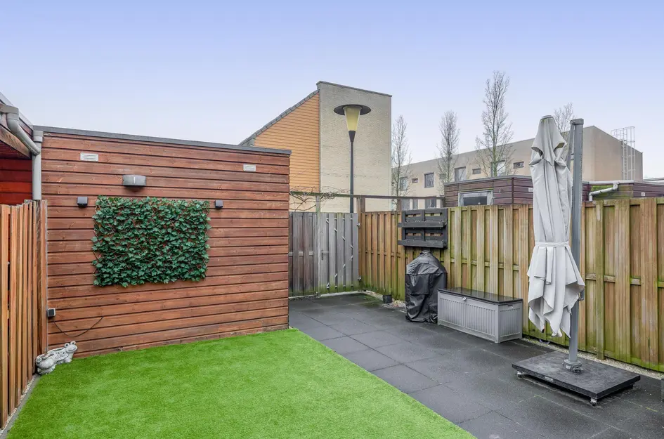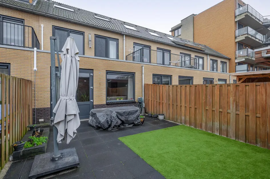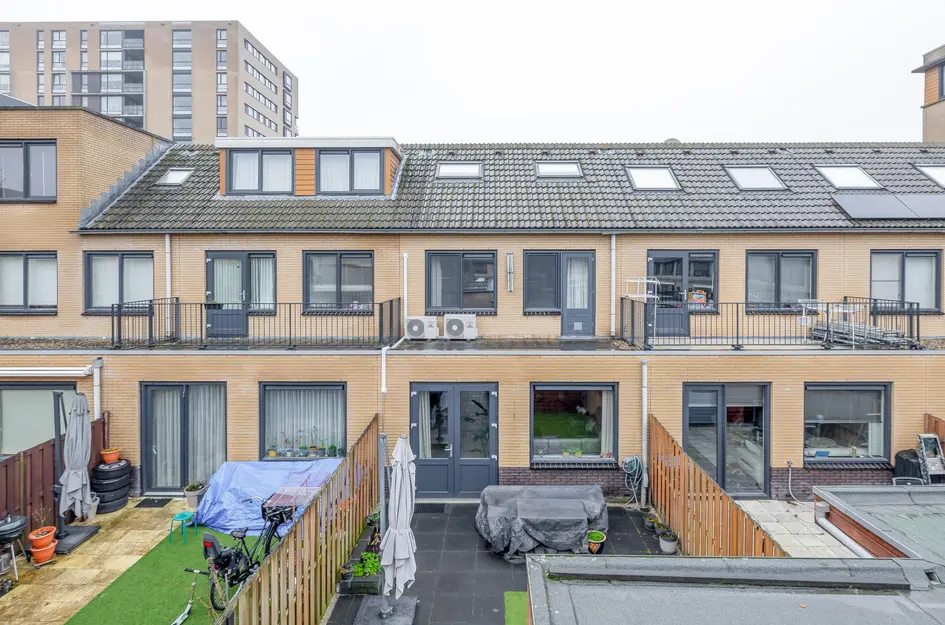 - De tussenwoning heeft een woonoppervlakte van 165 m² en beschikt over 5 kamers, waarvan 4 slaapkamers;