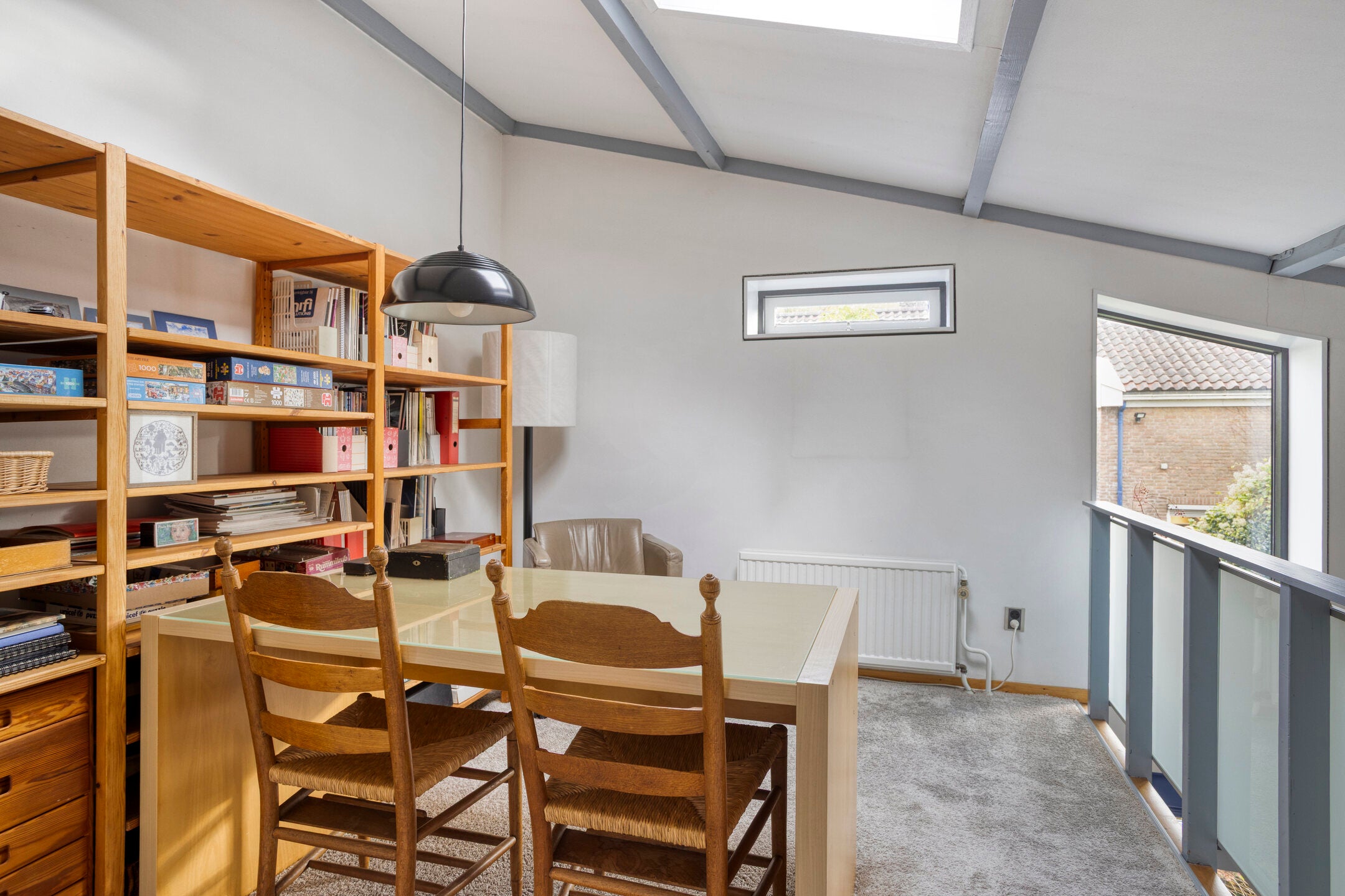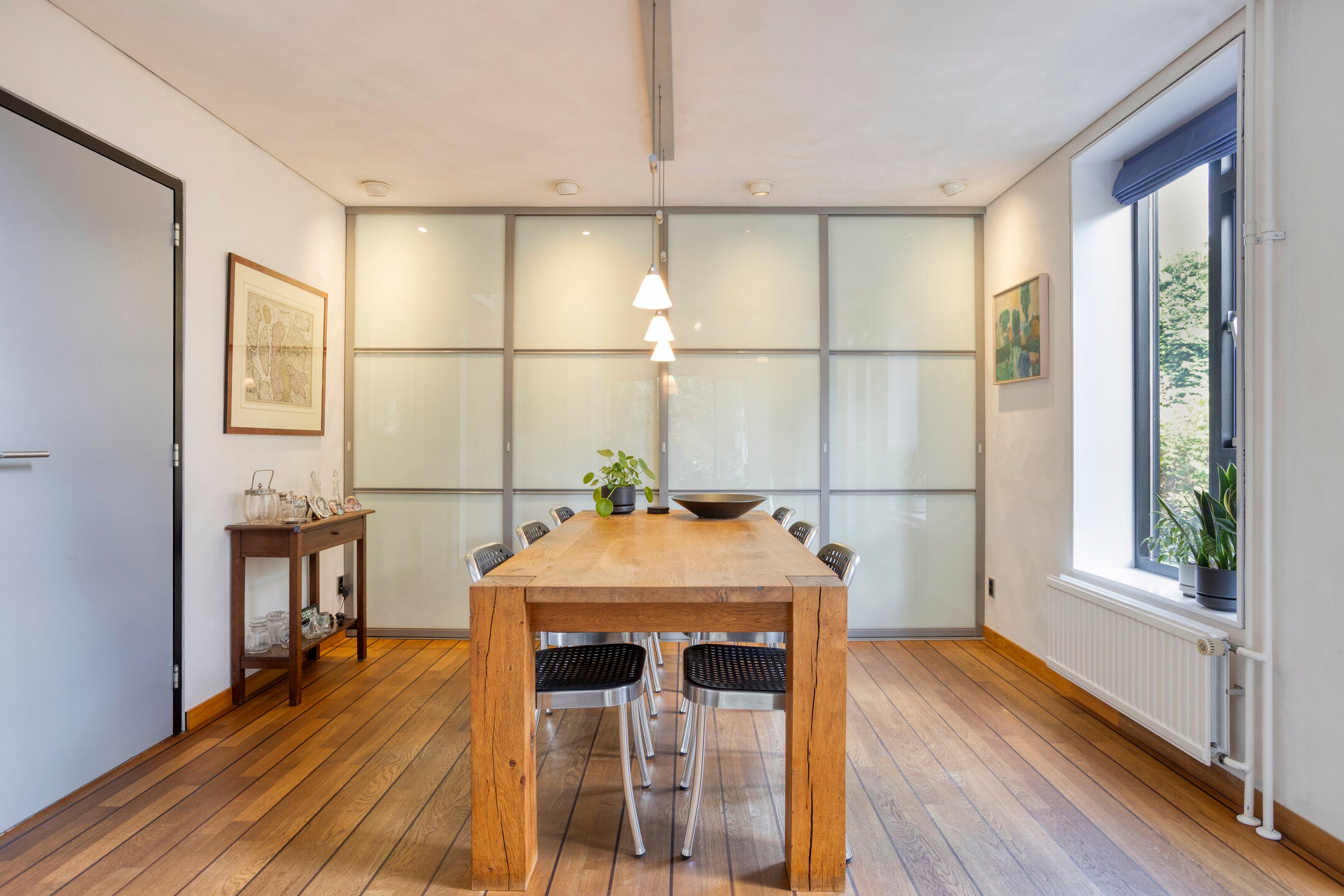 Bij binnenkomst valt het licht en de ruimte op. De tuingerichte woonkamer heeft kamerhoge ramen en een open haard, met een moderne keuken die voorzien is van inbouwapparatuur. De eerste verdieping bevat vier ruime slaapkamers, een multifunctionele ruimte en een moderne badkamer.