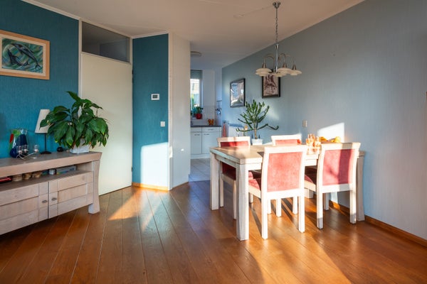 Mozartstraat 61 in Barendrecht is een uitstekend onderhouden gezinswoning in de populaire wijk Nieuweland. De bewoners hebben er meer dan twintig jaar met plezier gewoond, met een fijne tuin waar kinderen gespeeld hebben en veel zon en schaduw te vinden is. De woning heeft een royale voortuin en een tuingerichte woonkamer met veel lichtinval, dankzij de brede schuifpui. De moderne half-open keuken is van alle gemakken voorzien met vernieuwde inbouwapparatuur. Op de eerste verdieping zijn twee ruime slaapkamers en een moderne badkamer met ligbad. De tweede verdieping biedt extra kamers met dakkapellen. De smaakvol aangelegde tuinen rondom het huis zorgen voor privacy en ruimte. De wijk is geliefd vanwege de rustige omgeving en de nabijheid van voorzieningen en natuurgebieden. Met een energielabel A en zonnepanelen is de woning ook duurzaam.