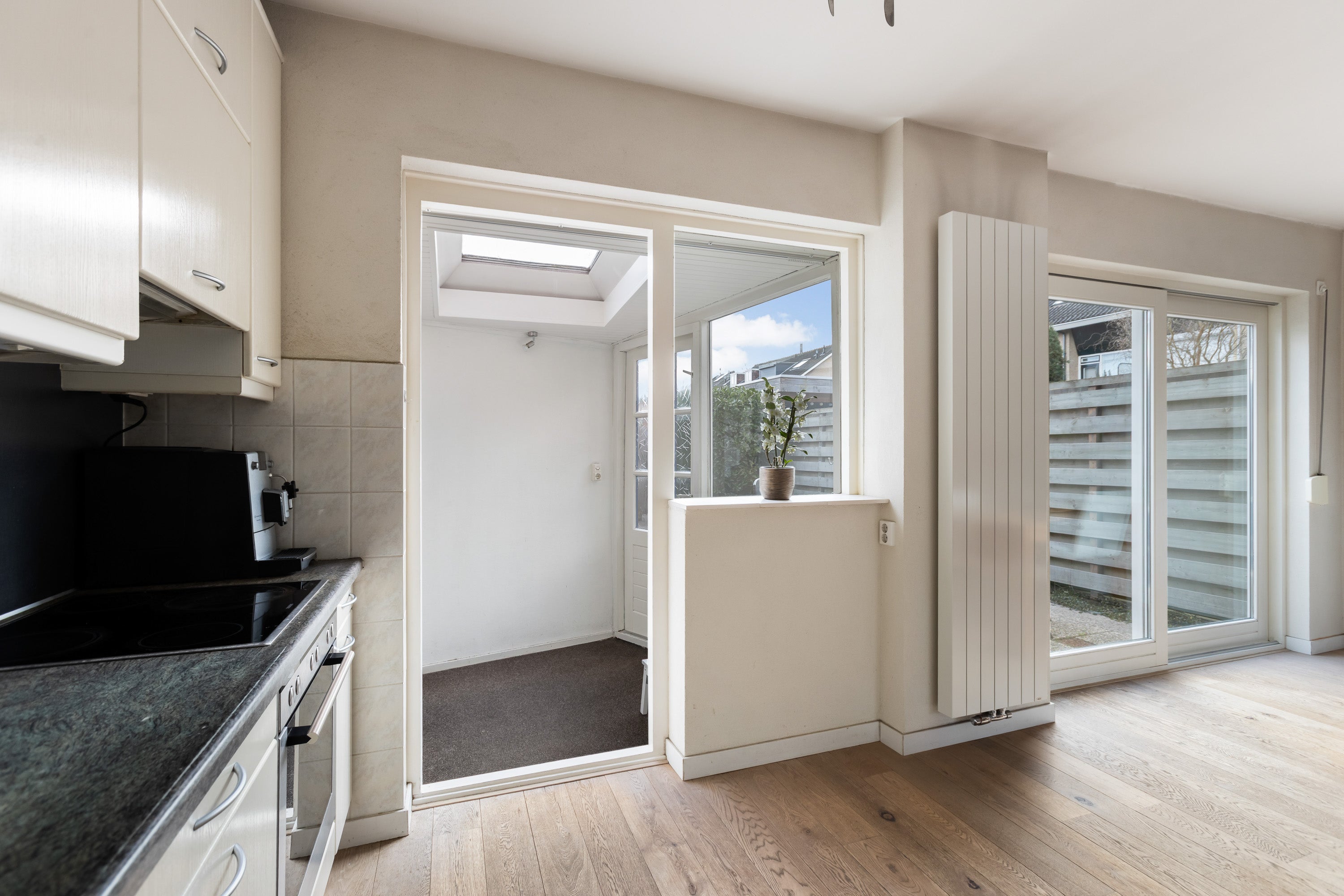 Deze ruime en moderne eengezinswoning biedt 4 slaapkamers en een zonnige achtertuin, gelegen aan een rustige weg met alle voorzieningen en het NS-station op loopafstand. De woning is smaakvol afgewerkt met hoogwaardige vloerbedekking en heeft een ruime woonkamer met open keuken. De achtertuin is ca. 640 cm breed en 1100 cm diep, zonder directe achterburen, en beschikt over een stenen fietsenberging en een tuinpoort naar het achterom.