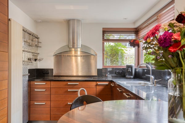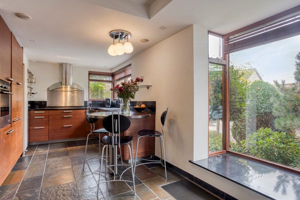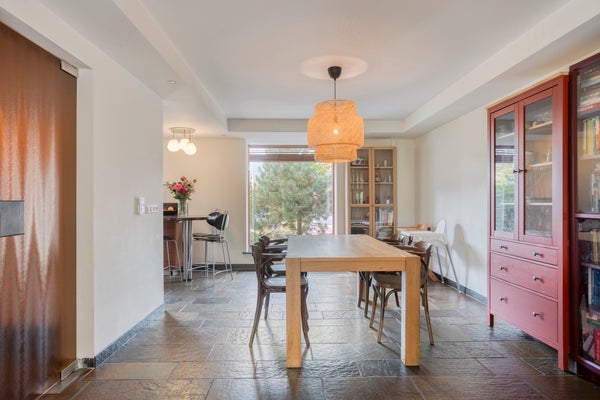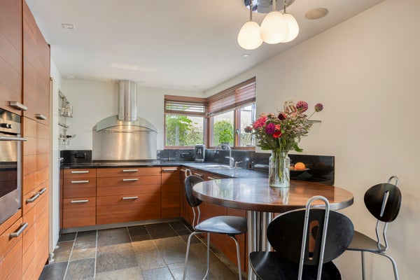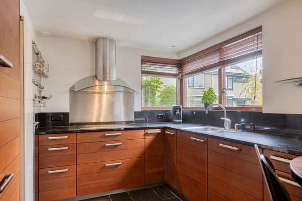 Schoener 63 in Barendrecht is een royaal en sfeervol hoek-herenhuis met een woonoppervlakte van circa 237 m². Dit huis beschikt over vijf slaapkamers, twee badkamers en een splitlevel living vol natuurlijk licht. De tuin, bijna een privépark, biedt veel privacy en prachtig uitzicht op de achtergelegen singel, wat het gevoel van buitenaf vergroot. De moderne keuken aan de voorzijde is ideaal voor het bereiden van maaltijden en biedt voldoende ruimte voor meerdere koks.