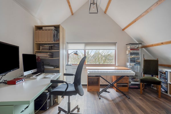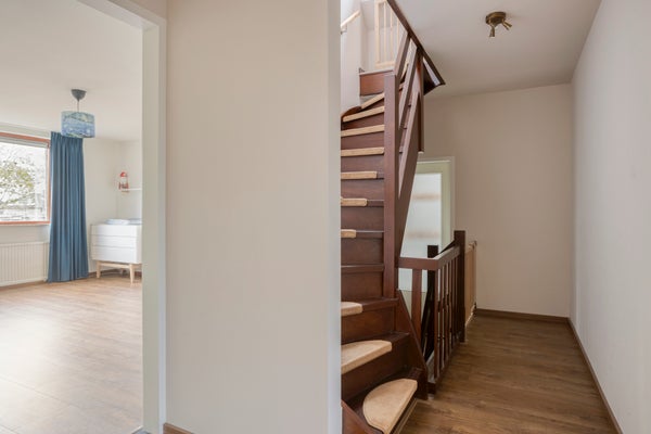 De eerste verdieping bevat drie grote slaapkamers en een wasruimte met toegang tot een zonnig dakterras. De tweede verdieping biedt nog eens twee extra kamers, perfect voor diverse doeleinden. Dit huis ligt centraal, met voorzieningen en natuur dichtbij en heeft een energielabel C.