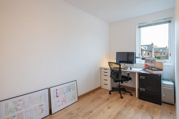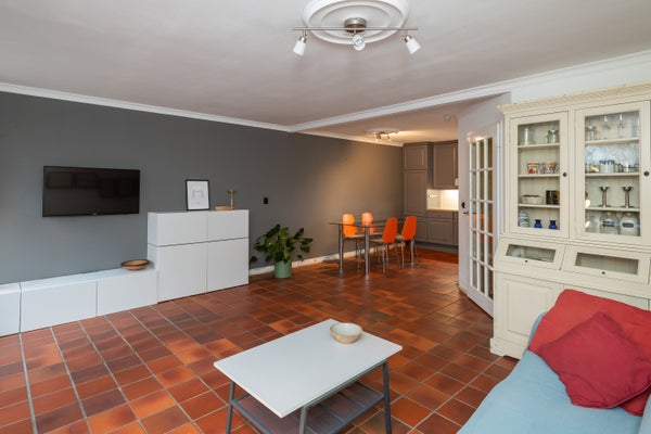 De woning heeft drie slaapkamers, waarvan er eenvoudig een vierde te realiseren is. De modern uitgeruste keuken heeft een praktische indeling en staat in open verbinding met de tuingerichte woonkamer, die veel lichtinval heeft.