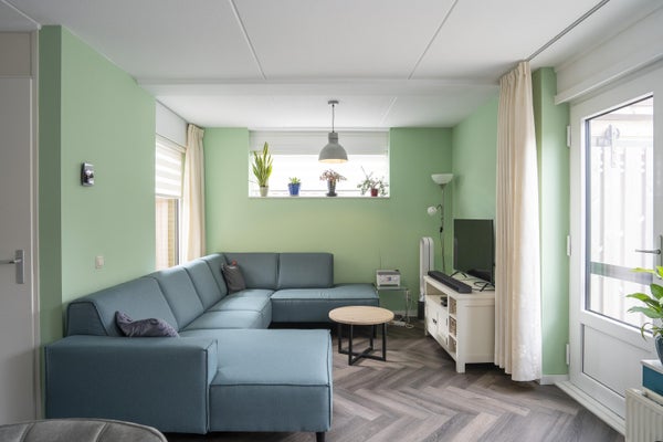 De woonkamer en hal zijn voorzien van een nieuwe PVC vloer (april 2025)