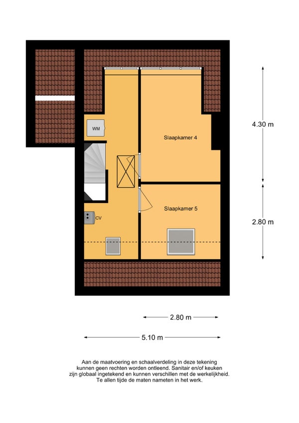 Slaapkamer aan de voorzijde is voorzien van een dakvenster en de slaapkamer aan de achterzijde is voorzien van een dakkapel en airco.