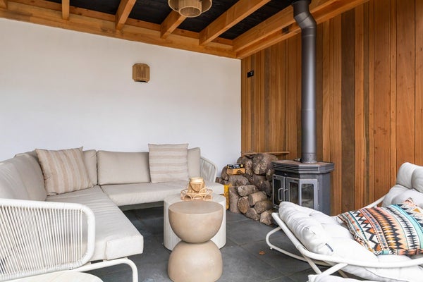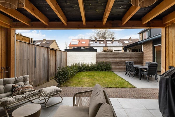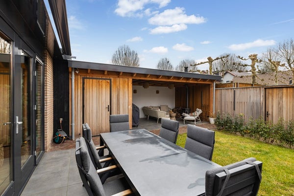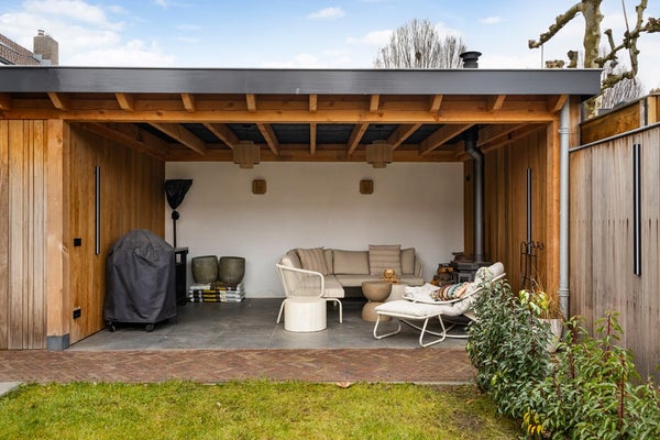 Via de openslaande deuren in de keuken of via de loopdeur vanuit de garage bereik je de gezellige achtertuin. Dankzij de gunstige ligging op het zuiden is dit een heerlijke plek om volop van de zon te genieten. Onder de sfeervolle veranda kun je ook in de avonden comfortabel buiten zitten, eventueel met de houtkachel aan. De royale garage en berging is volledig geïsoleerd en biedt volop mogelijkheden, van extra bergruimte tot het creëren van een hobby- of werkruimte. Parkeren is bovendien eenvoudig geregeld op eigen terrein.