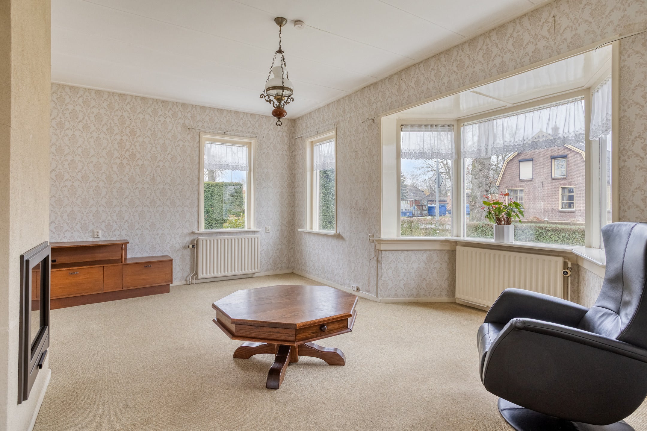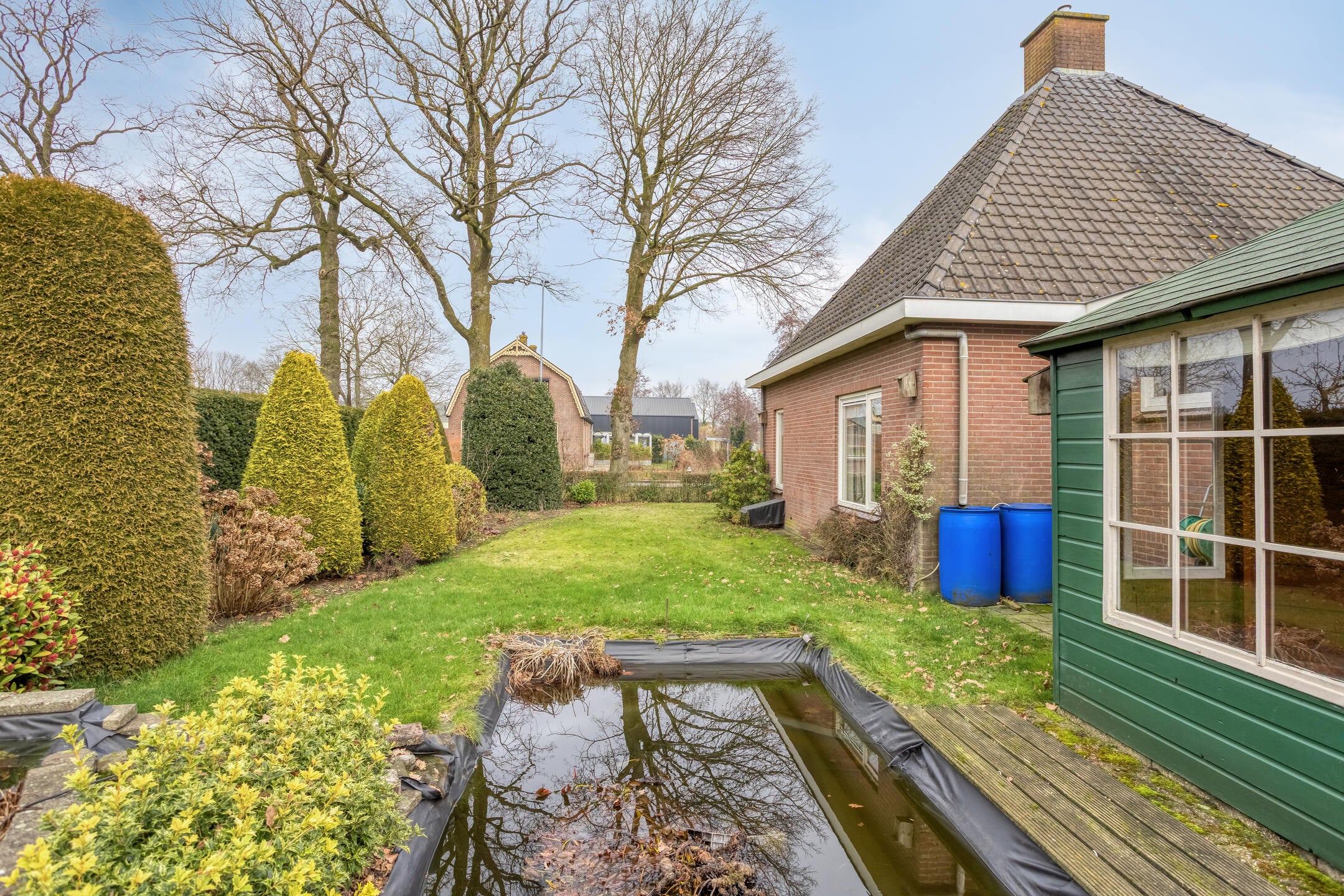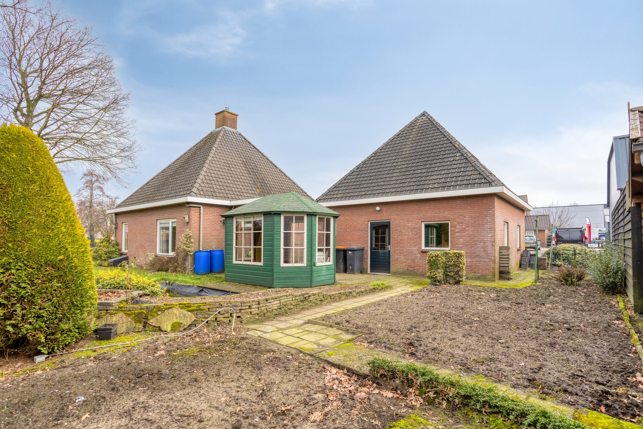 U vindt hier een unieke kans in Barneveld: een karakteristieke vrijstaande woning met eigen oprit en een ruime garage, gelegen op een perceel van 588 m². Dit huis biedt op de begane grond een slaap- en badkamer, wat het levensloopbestendig maakt. Via de stijlvolle voordeur komt u in de hal met toegang tot de woonkamer en woonkeuken. De lichte woonkamer heeft grote raampartijen en een erker, en loopt over in de eetkamer. De keuken beschikt over een L-vormige opstelling met moderne apparatuur. De eerste verdieping kan naar eigen wens worden ingedeeld, met ruimte voor extra slaapkamers. In de ruime garage van bijna 40 m² zijn wasmachineaansluitingen aanwezig. De omliggende tuin met gazon en vijver biedt veel ruimte, en er zijn parkeerplaatsen op eigen terrein. Centrumsituatie met voorzieningen en natuur dichtbij.
