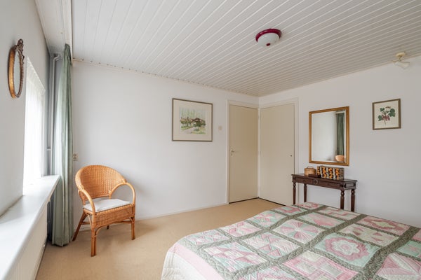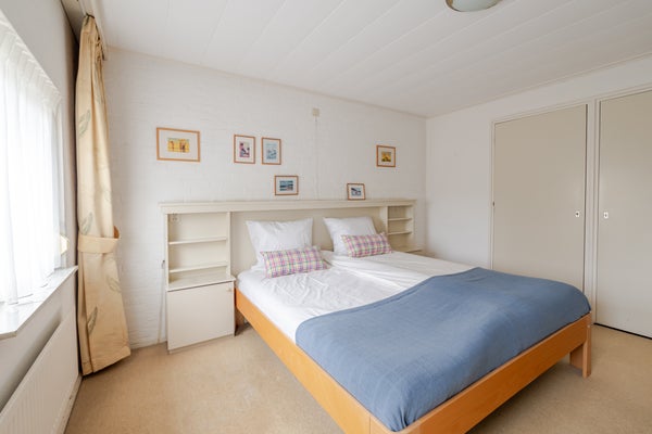 Eén ruime slaapkamer aan de achterzijde, eveneens met inbouwkasten