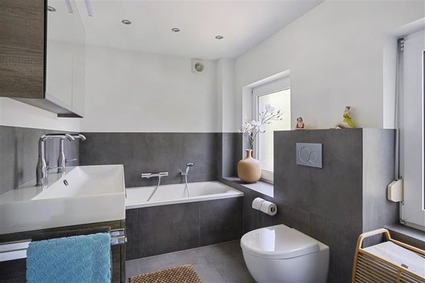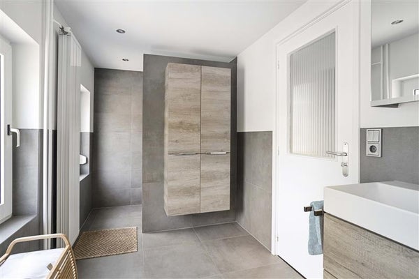 De badkamer is misschien wel het pronkstuk van deze woning. Strak, modern en voorzien van alle gemakken. Denk aan een ruime inloopdouche, een luxe wastafelmeubel dat alles opbergt en een stijlvol design dat doet denken aan een wellnessresort. Hier start je ochtend fris en fruitig en sluit je dag ontspannen af.
