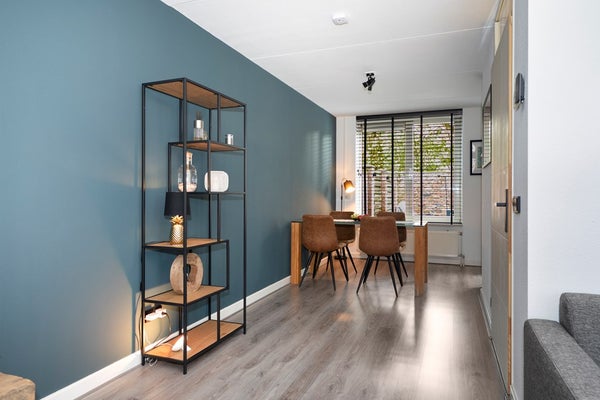 De woning heeft een frisse uitstraling en biedt op de begane grond een lichte en sfeervolle woon-/eetkamer, met open verbinding naar een smaakvolle, moderne keuken. De apparatuur; inductiekookplaat, afzuigkap, koelkast, combi-oven en een vaatwasser met Home Connect.