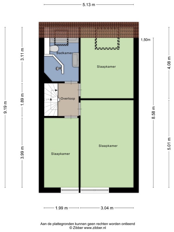 - Aanwezig (63 m², gelegen op het zuidoosten)