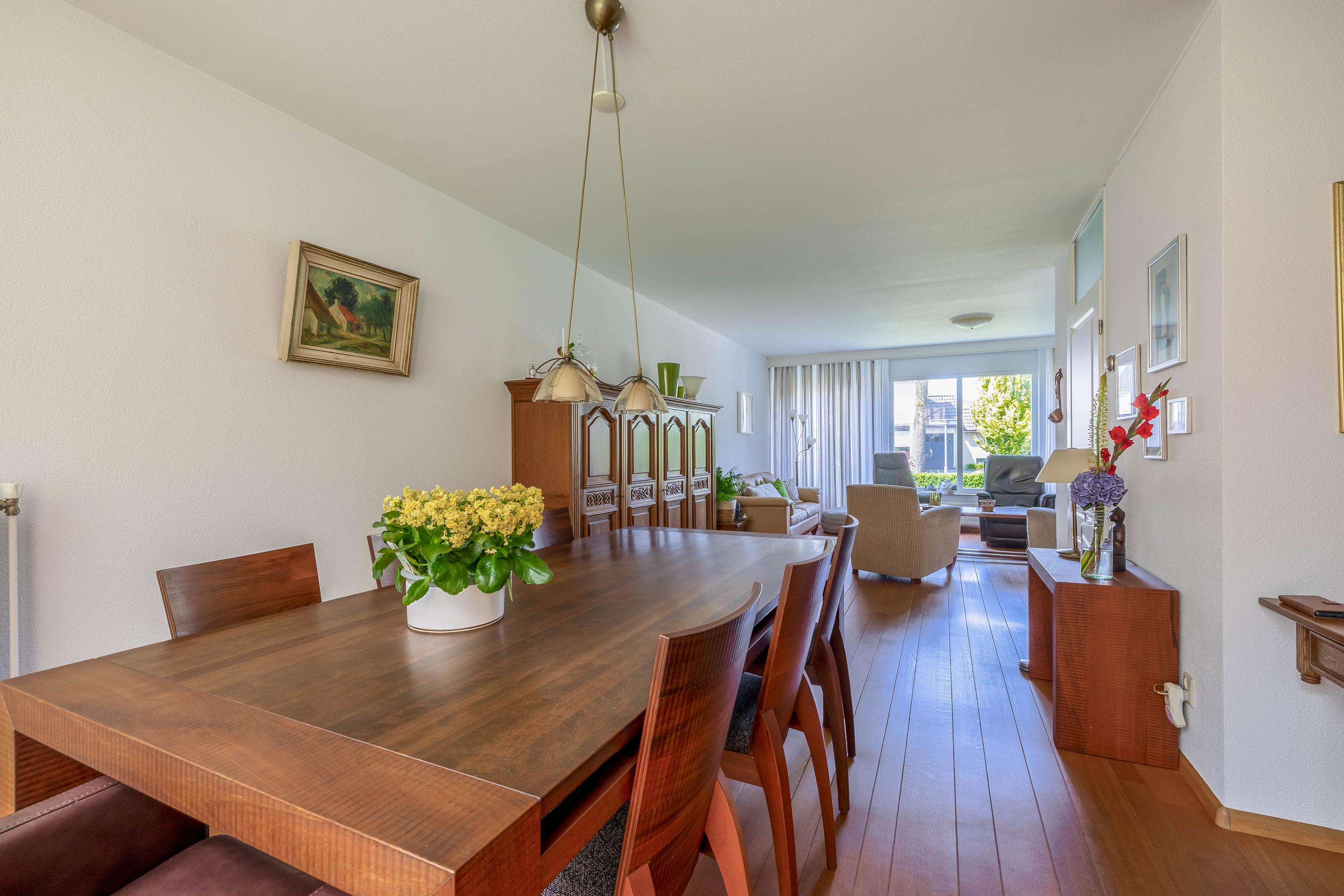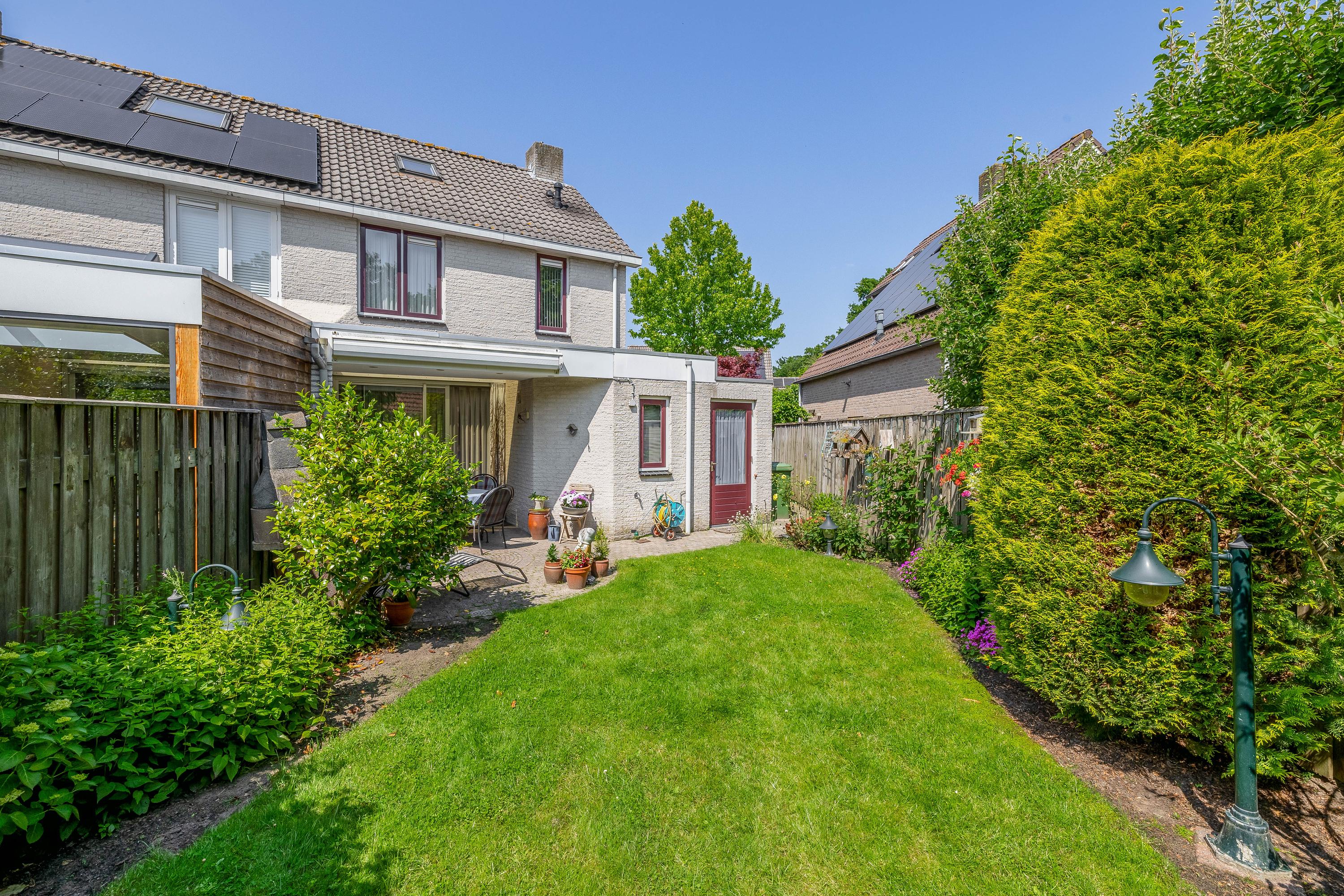 Deze uitgebouwde eengezinswoning in de kindvriendelijke woonwijk "Laarsche Velden" ligt nabij een natuurgebied. De woning beschikt over een lichte woonkamer met een parketvloer en schuifpui naar de zonnige achtertuin, waar een overkapping is. De semi-open keuken heeft moderne voorzieningen en biedt toegang tot de inpandige garage. De eerste verdieping heeft drie slaapkamers en een ruime badkamer met ligbad, douche en toilet. Op de tweede verdieping bevindt zich een zolderkamer en een voorzolder met aansluitingen voor wasapparatuur. De woning, gebouwd in 1995, heeft dak-, muur- en vloerisolatie en is recent geschilderd. Met een woonoppervlakte van 116 m² en een perceel van 306 m² biedt deze woning een comfortabel thuis.