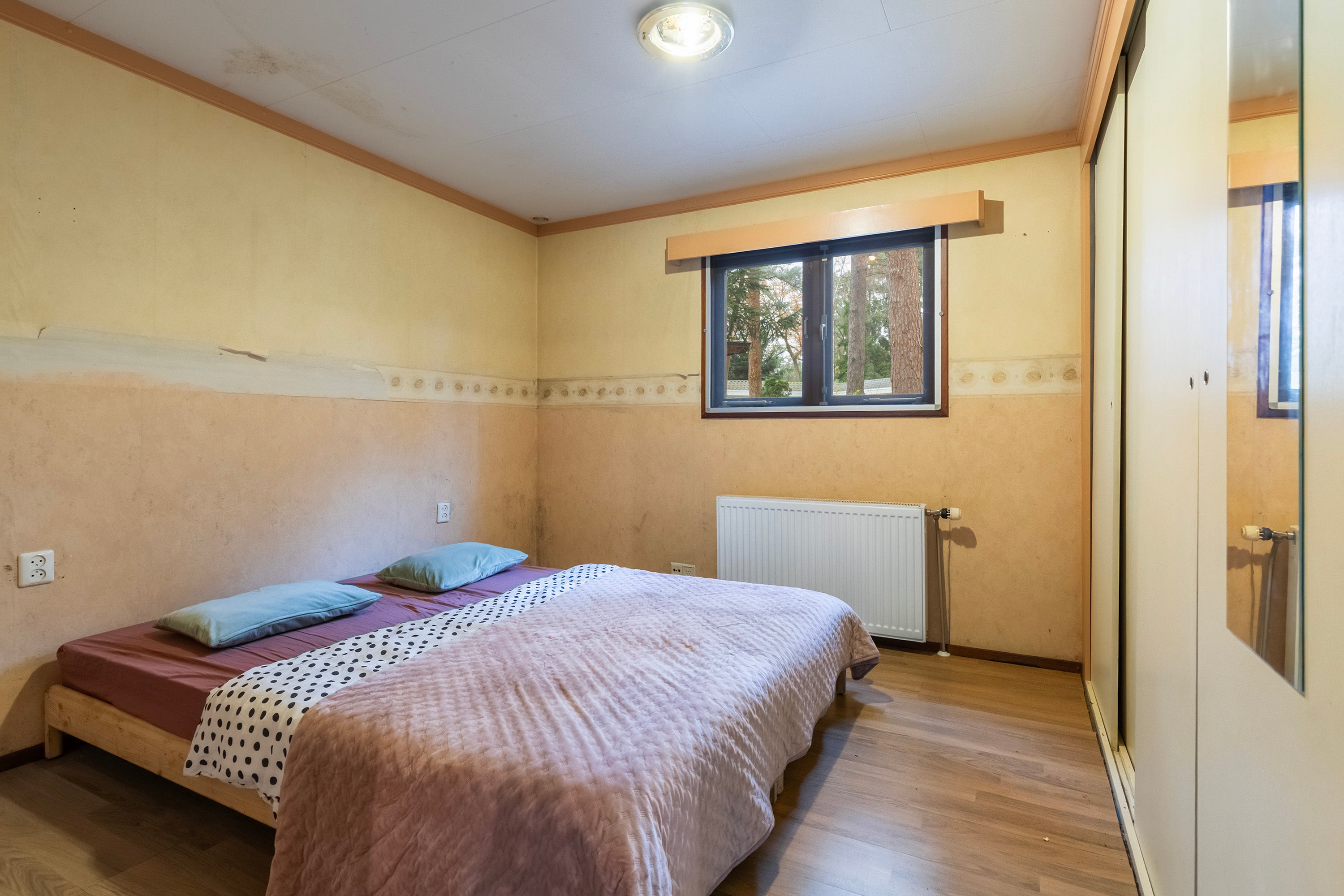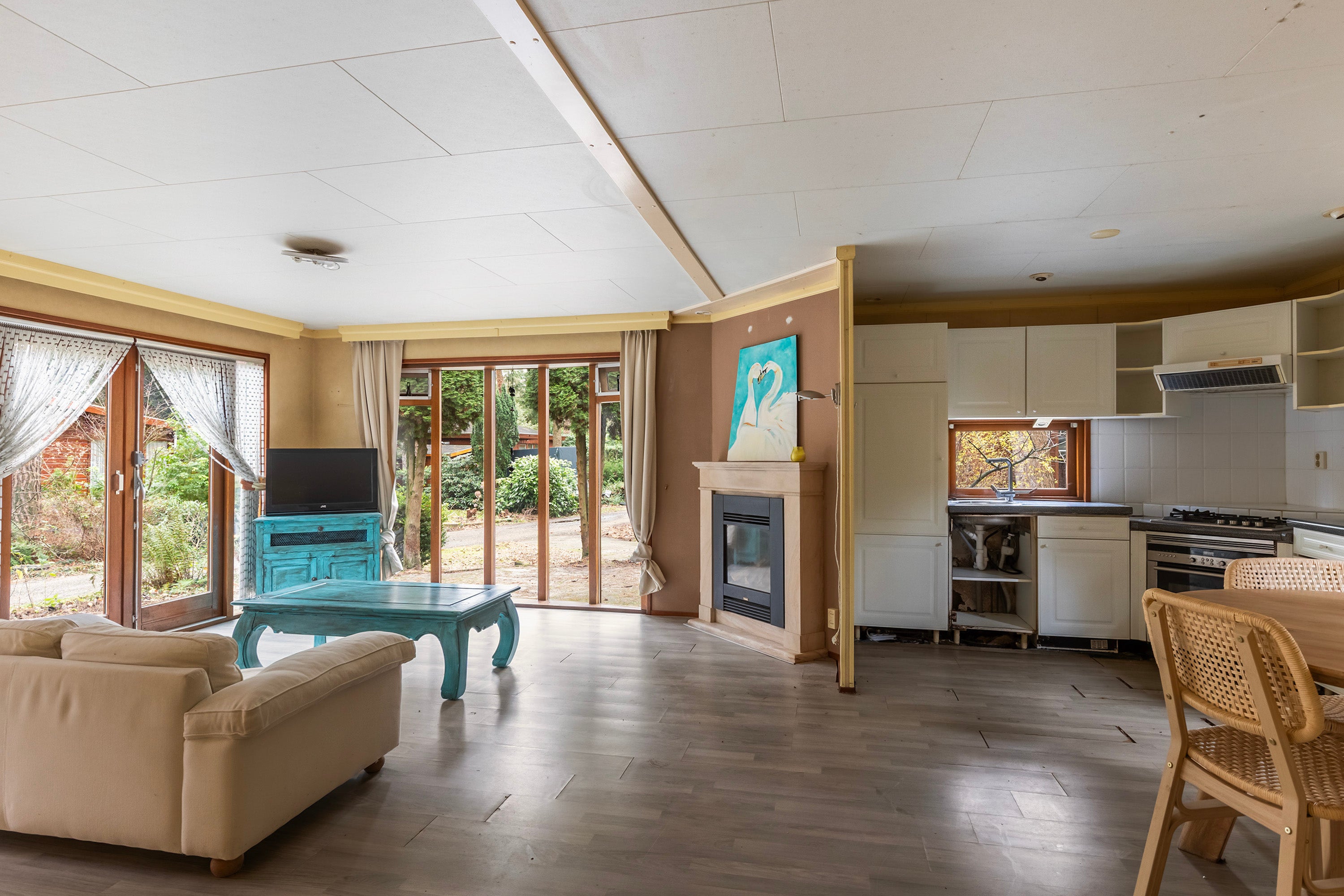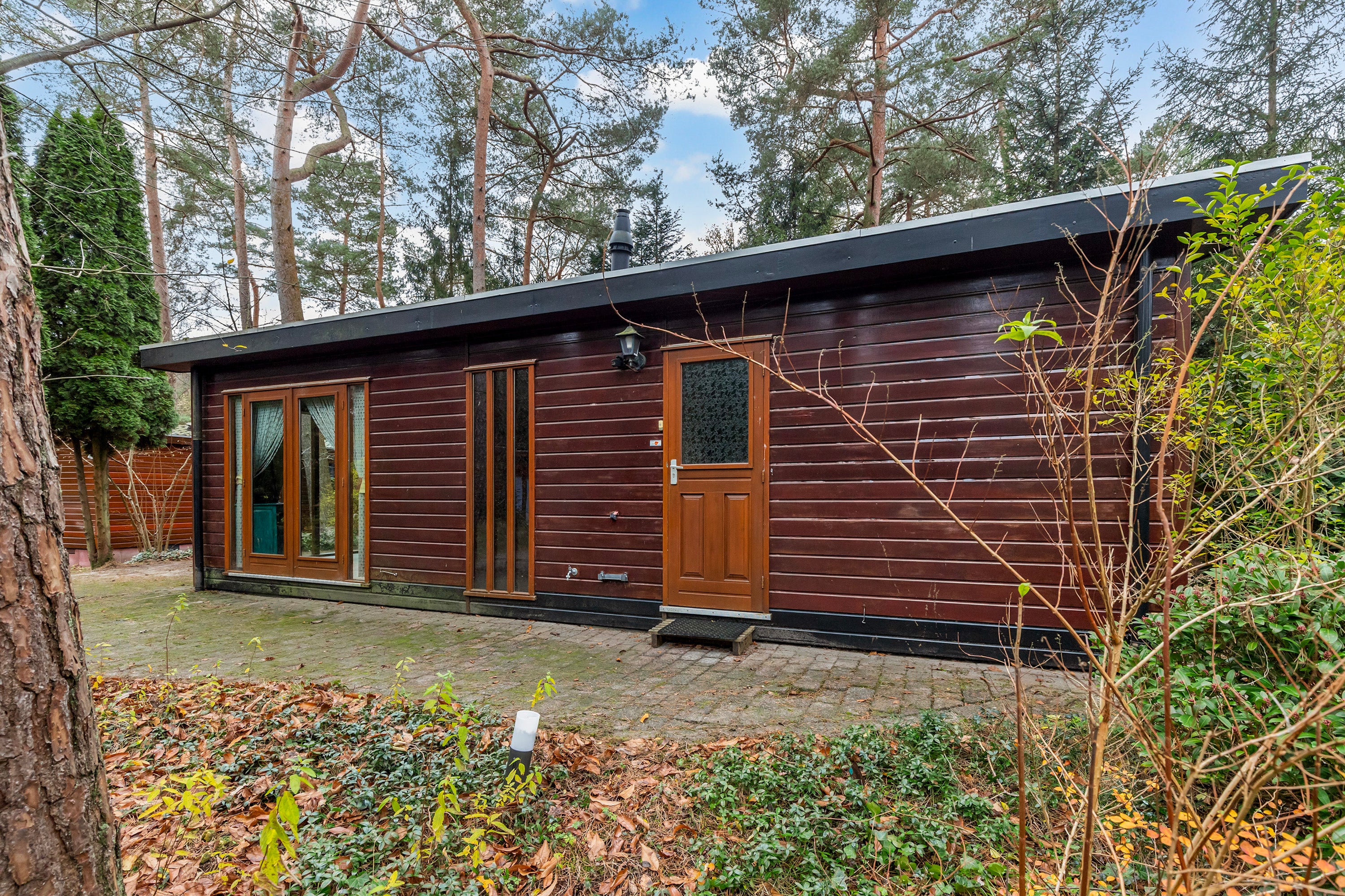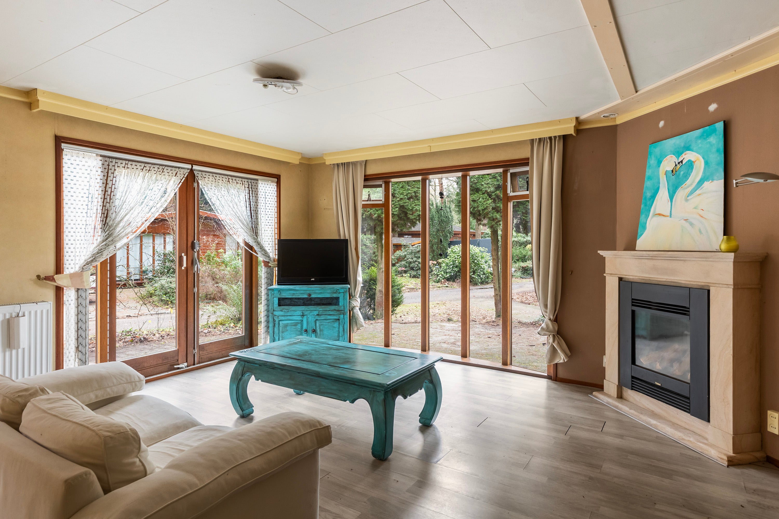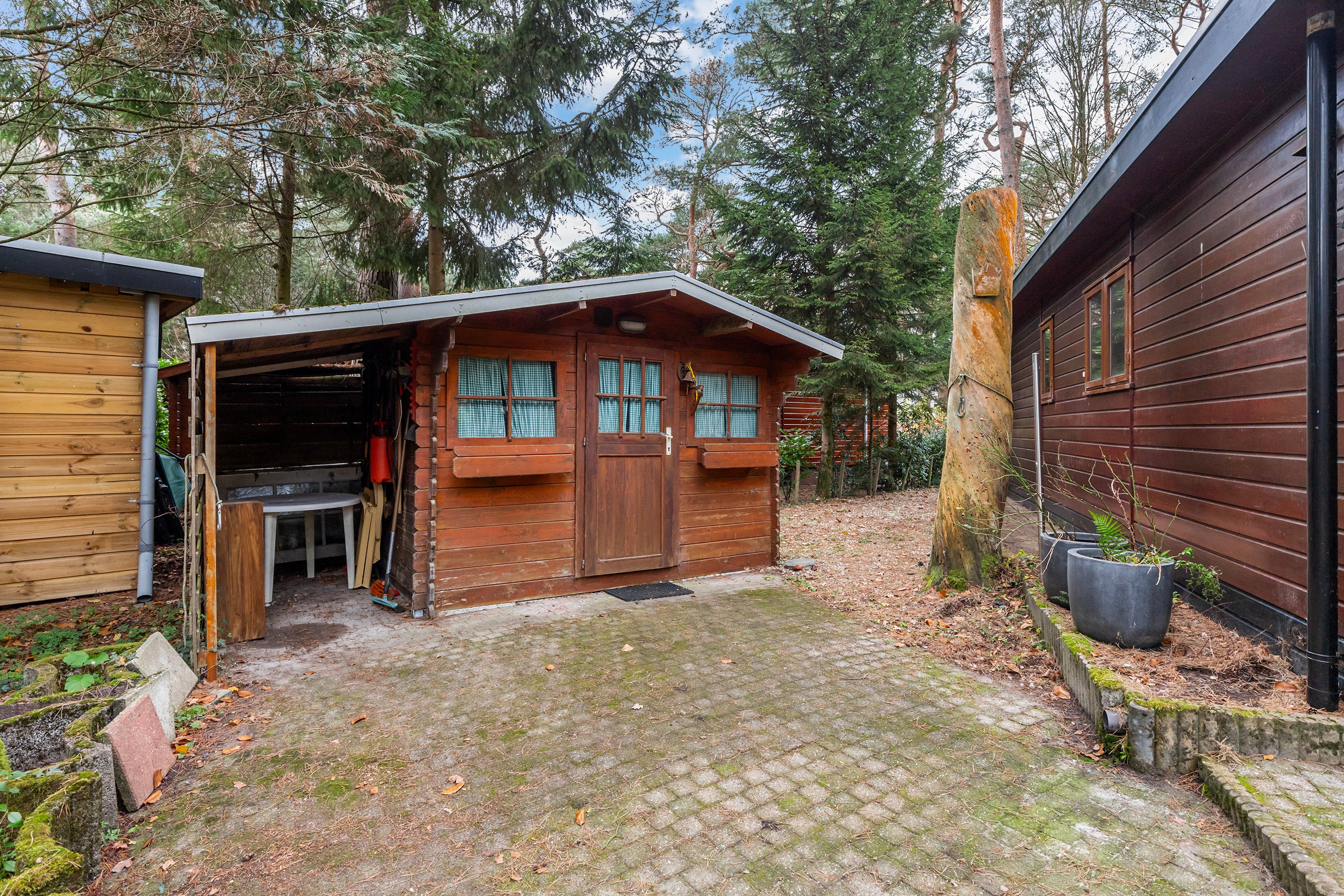 De indeling omvat een entree met hal, badkamer voorzien van douche, toilet en wastafel, een ruime woonkamer met gashaard en openslaande deuren naar de bostuin, en een halfopen keuken. De bungalow heeft 3 slaapkamers en is eenvoudig geïsoleerd (energielabel D) met hardhouten kozijnen en dubbele beglazing. De woonoppervlakte bedraagt 64 m² met 1 woonlaag. De tuin biedt ruimte rondom de woning met een vrijstaande schuur.