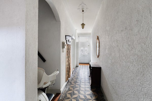 Via de voordeur met gietijzeren deurroosters betreedt u de statige en ruime hal.