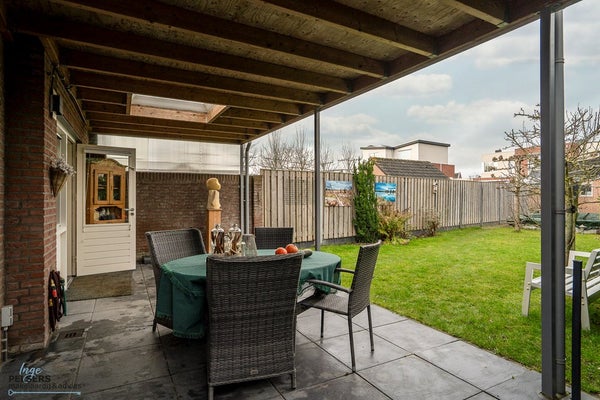 De geheel omheinde achtertuin biedt volop privacy en is een heerlijke plek voor jong en "oud". Onder de terrasoverkapping (2017) direct aan de woning geniet je tot in de late uurtjes van het buitenleven, nagenoeg ongeacht het seizoen.