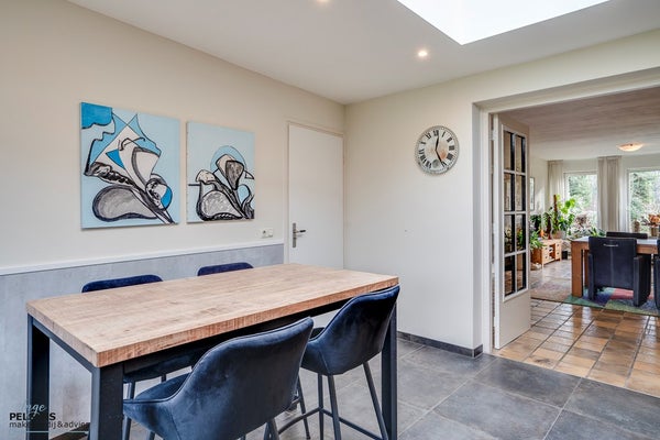 Een fijne plek om te koken en tijdens het kokkerellen de dag bij te praten. Een fijne plek in huis om de dag te starten én goed af te kunnen sluiten. Deze leefkeuken, met zicht op de achtertuin, is in 2017 gemoderniseerd en voorzien van vloerverwarming en luxe keukenapparatuur, de vaatwasser is zelfs geheel nieuw.