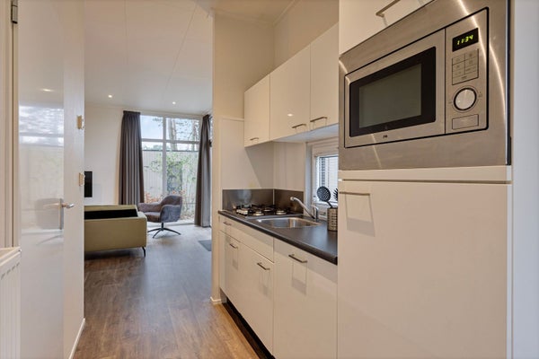 Deze moderne vakantiewoning op Maalbekerweg 25, gelegen op EuroParcs Maasduinen, is een ideale plek voor zowel eigen gebruik als verhuur. Met een woonoppervlak van 51 m² en ingericht voor 4 personen, beschikt de woning over twee slaapkamers. De master bedroom heeft een tweepersoonsbed en een ruime schuifwandkast. De tweede slaapkamer biedt ook voldoende bergruimte. De badkamer is volledig betegeld en voorzien van een wastafelmeubel, toilet en doucheruimte. De open keuken is modern en compleet met inbouwapparatuur. De lichte woonruimte met hoge plafonds heeft een gezellige zit- en eethoek. Buiten geniet u van een tuin rondom het huis in een groene omgeving nabij Nationaal Park de Maasduinen. Het park beschikt over voorzieningen zoals een zwembad en een restaurant.