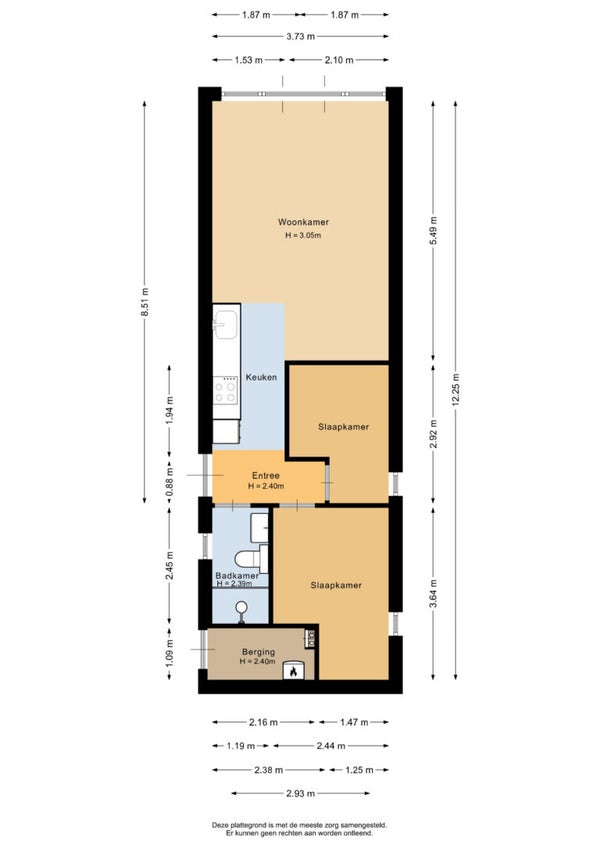 - De tussenwoning heeft een woonoppervlakte van 43 m² en beschikt over 3 kamers, waarvan 2 slaapkamers;