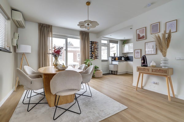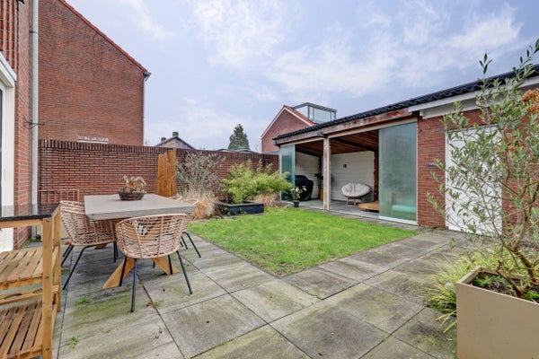 Deze instapklare twee-onder-een-kapwoning, gebouwd in 1961 en met een perceeloppervlakte van 226 m², biedt een comfortabele woonsfeer. Met een woonoppervlakte van 116 m² en 5 kamers, waaronder 4 slaapkamers, is er voldoende ruimte voor het hele gezin. De begane grond heeft een sfeervolle woonkamer met airconditioning en een moderne open keuken. De volledig betegelde badkamer op de eerste verdieping is compleet gerenoveerd. De tuin is netjes onderhouden en er is een vrijstaande stenen schuur met een gezellige overkapping, perfect om buiten te ontspannen. De woning is gelegen in een rustige straat, dichtbij het centrum en biedt goede verbindingen met winkels en scholen. Met energielabel B en zonnepanelen is het ook energiezuinig.