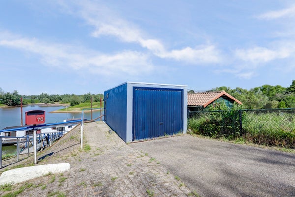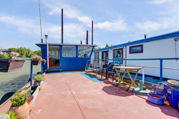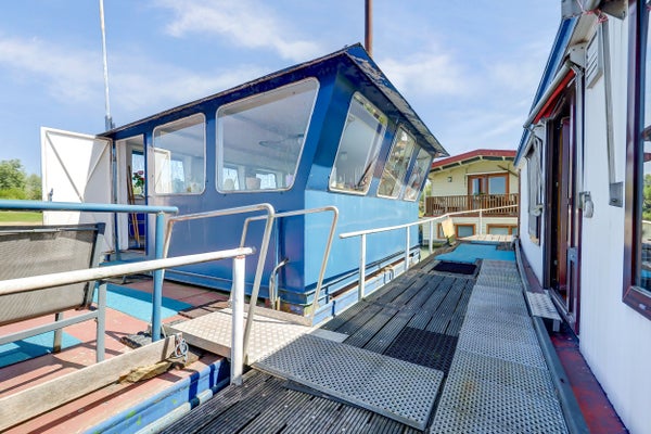 Buiten zijn er verschillende mogelijkheden: een loopbordes rondom de woonboot voor buitenverblijf, een stalen dekschuit met terrasgedeelte, en een vrijstaande garage. De dekschuit dient niet alleen als golfbreker, maar ook als een multifunctionele ruimte met stalen keukenblok. De garage is voorzien van elektra en water.