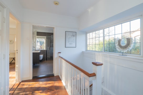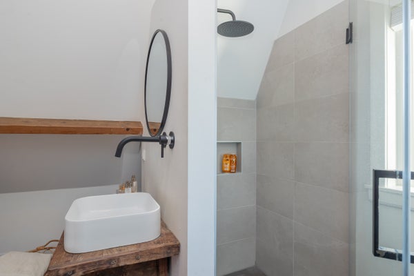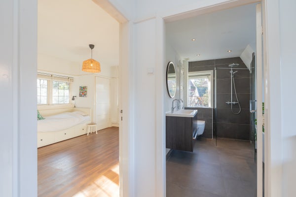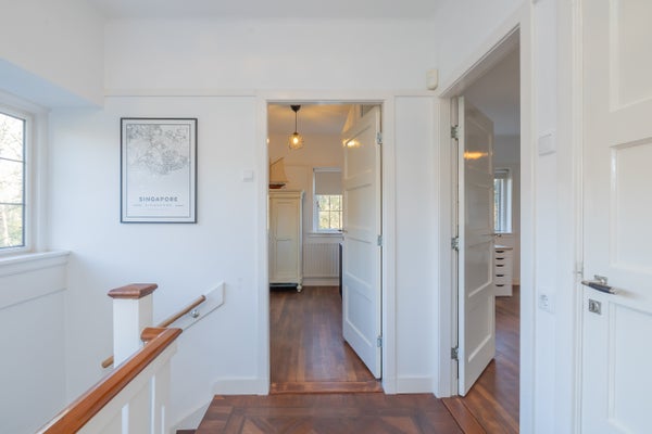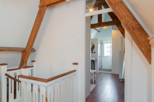 Op de eerste verdieping bevinden zich drie goed bemeten slaapkamers en een moderne badkamer. Via de vaste trap bereik je de sfeervolle tweede verdieping met master-bedroom inclusief inloopkleedkamer/eigen badkamer – een fijne, rustige verdieping om je terug te trekken.