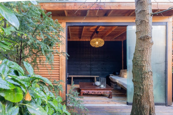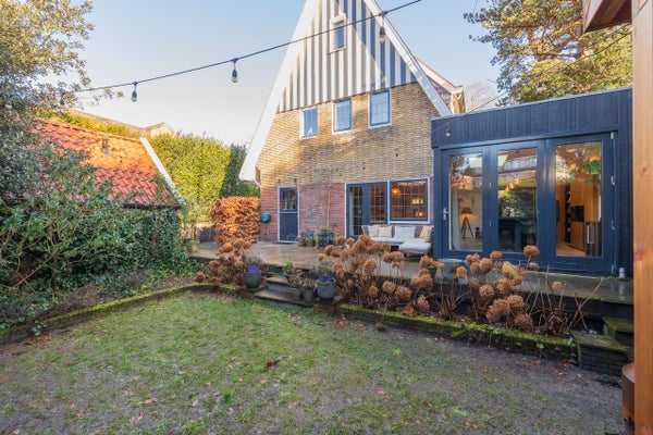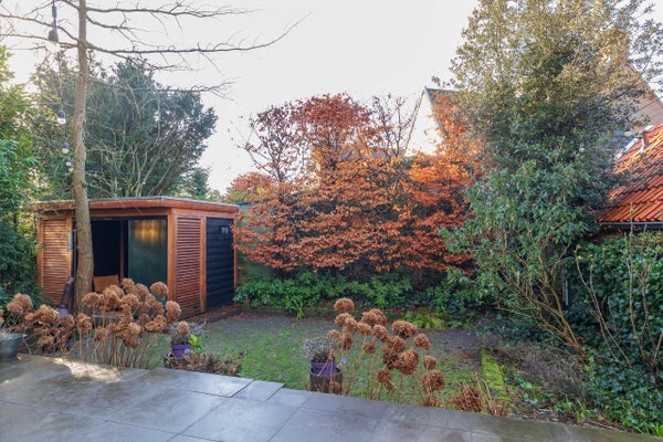 Ook buiten is het genieten: parkeren kan op eigen terrein en/of in de vrijstaande garage. Aan de voorzijde is een fraaie fietsenberging gerealiseerd en achterin de tuin staat een gezellig bijgebouw, perfect als werkplek, hobbyruimte of speelplek voor de kinderen.