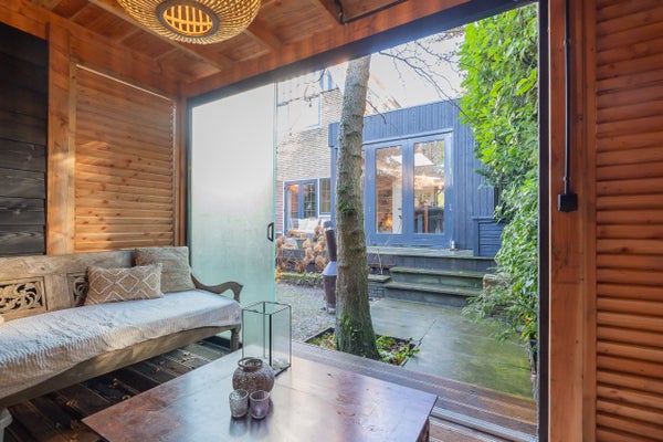 - Achtertuin gelegen op het zuid/westen met tuinhuis (2024) en fietsenschuur (2024) aan de voorzijde