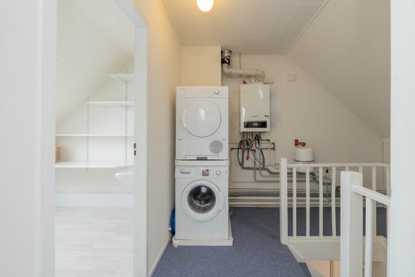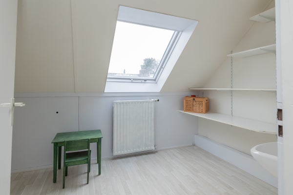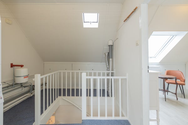 2e etage: overloop met c.v. opstelling en wasmachine en droger aansluiting, 2 kamers v.v. dakramen en 1 v.v. wastafel.