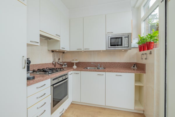 De gemoderniseerde keuken is voorzien van diverse inbouwapparatuur, plint/ heteluchtverwarming en biedt volop comfort voor dagelijks gebruik en heeft eveneens toegang tot de tuin — praktisch en prettig in gebruik.