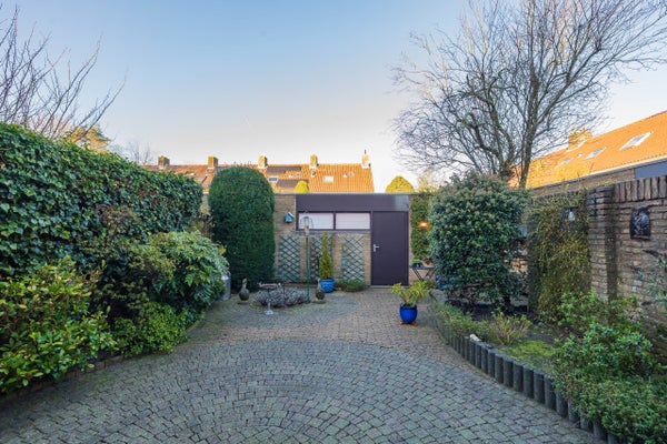 • Verzorgde voor- en zonnige achtertuin (NW) met achterom.
