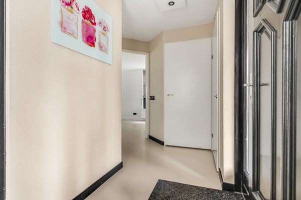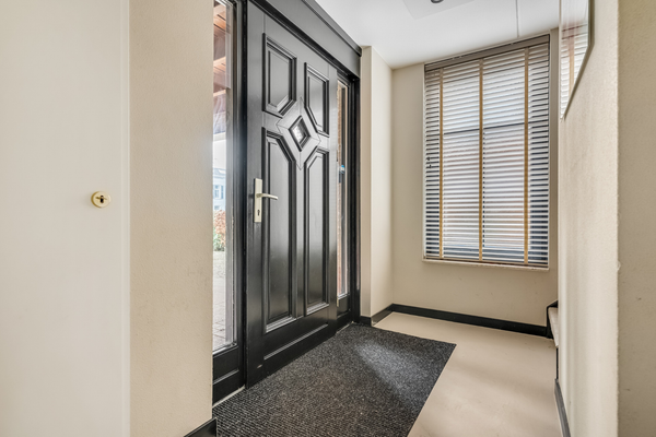 De royale hal is een fraaie ontvangstruimte, die onder andere toegang geeft tot het luxe gastentoilet. Aan de andere zijde bevinden zich de trapopgang en een bergkast, die als garderobe gebruikt kan worden. De gietvloer, in een warme bruintint, ligt op vrijwel de hele begane grond.