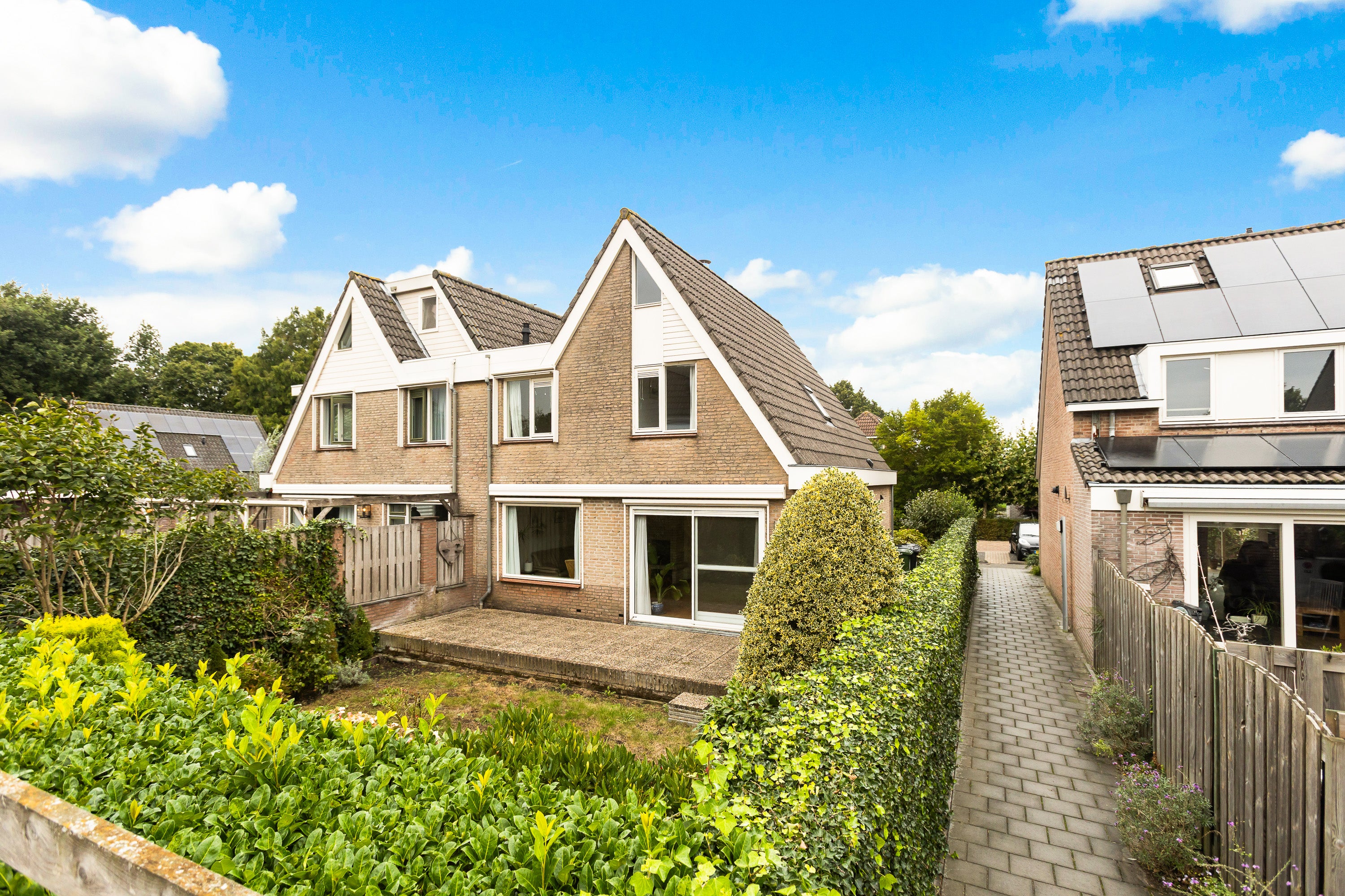Op de eerste verdieping zijn er vier kamers en twee badkamers, ideaal voor grotere gezinnen. De lichte bergzolder biedt extra opbergruimte. De achtertuin is netjes aangelegd, terwijl aan de voorzijde parkeermogelijkheden zijn. Met energielabel C en als bouwjaar 1992 geeft deze woning comfort en ruimte in een prettige omgeving.