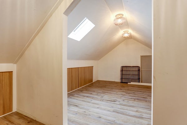 Het huis blijft verrassen met zijn vele pluspunten! Zo mag de netjes afgewerkte zolder absoluut niet ontbreken. In 2022 plaatsten de huidige eigenaren een dakvenster en in 2025 werd er een fraaie laminaatvloer gelegd, met onder de dakschuinte extra kastruimte gecreëerd. Met een oppervlakte van circa 12 m² voldoet deze ruimte officieel niet aan de woonoppervlakte, maar hij is eenvoudig in te richten als vierde slaapkamer of fijne hobbyruimte.