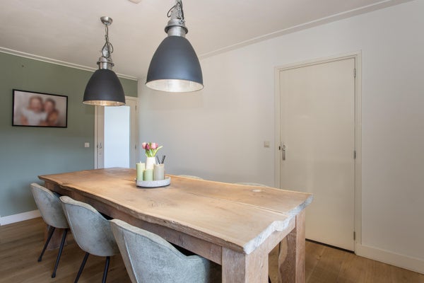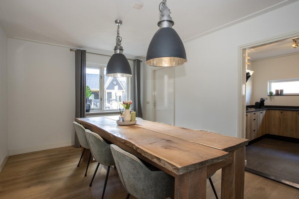 Dit verrassende vrijstaande woonhuis ligt op een perceel van 388 m² en heeft een woningoppervlakte van 150 m². Het huis beschikt over een eigen inrit voor 2 auto’s en een onderhoudsvriendelijke achtertuin op het zuidoosten, met riante overkapping en een sfeervol overdekt terras. Een kantoor- of hobbyruimte aan huis en 19 zonnepanelen dragen bij aan het Energielabel B. De indeling is als volgt: de ruime hal leidt naar een L-vormige woonkamer met veel lichtinval en een eikenhouten vloer, de eetkamer biedt uitzicht op de tuin. De semi-open keuken is modern ingericht. De eerste verdieping heeft 3 slaapkamers en een apart toilet. De woning is stijlvol verbouwd en is uiterst goed geïsoleerd met zowel dak-, muurisolatie als vloerisolatie. Vrije tijd en werk zijn hier perfect te combineren.