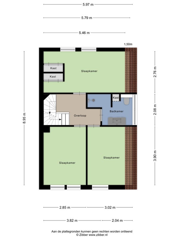 - De tussenwoning heeft een woonoppervlakte van 164 m² en beschikt over 6 kamers, waarvan 3 slaapkamers;