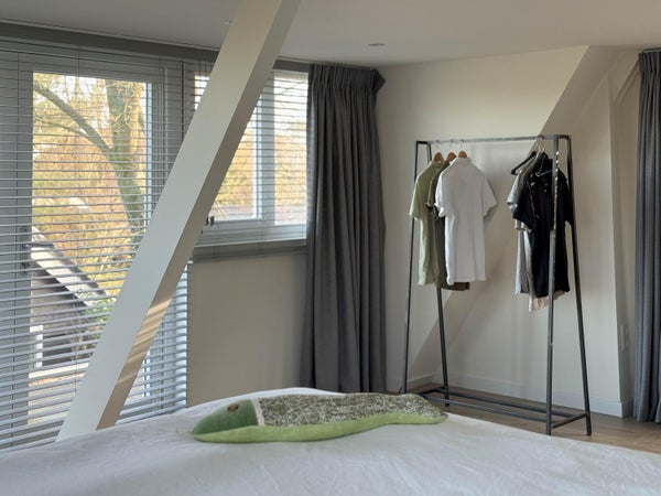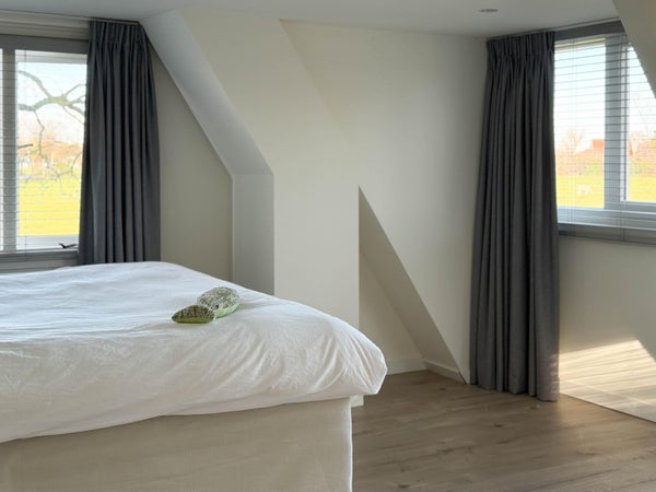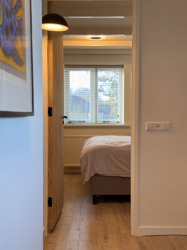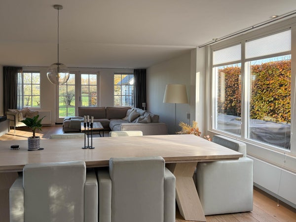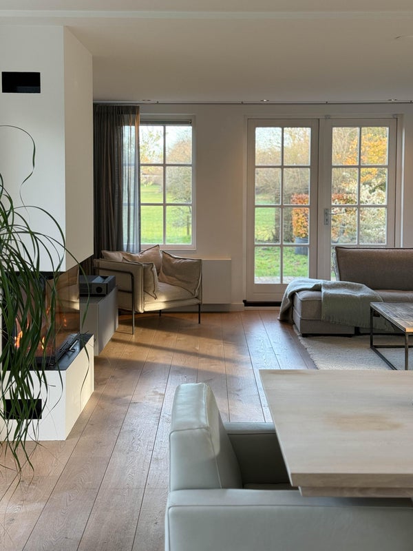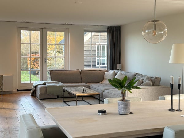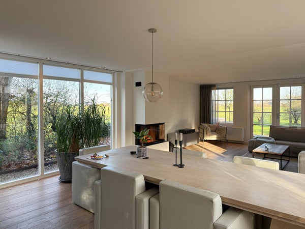 In de lichte woonkamer met houtkachel zijn er openslaande deuren naar het terras en de tuin. De open keuken is voorzien van moderne inbouwapparatuur. Verder is er een multifunctionele kamer die dienst kan doen als slaapkamer of werkkamer. Op de eerste verdieping zijn er twee ruime slaapkamers en een luxe badkamer. De zolder biedt praktische bergruimte. De villa ligt dicht bij het gezellige centrum van Bergen en de natuur, ideaal voor rust en ruimte.
