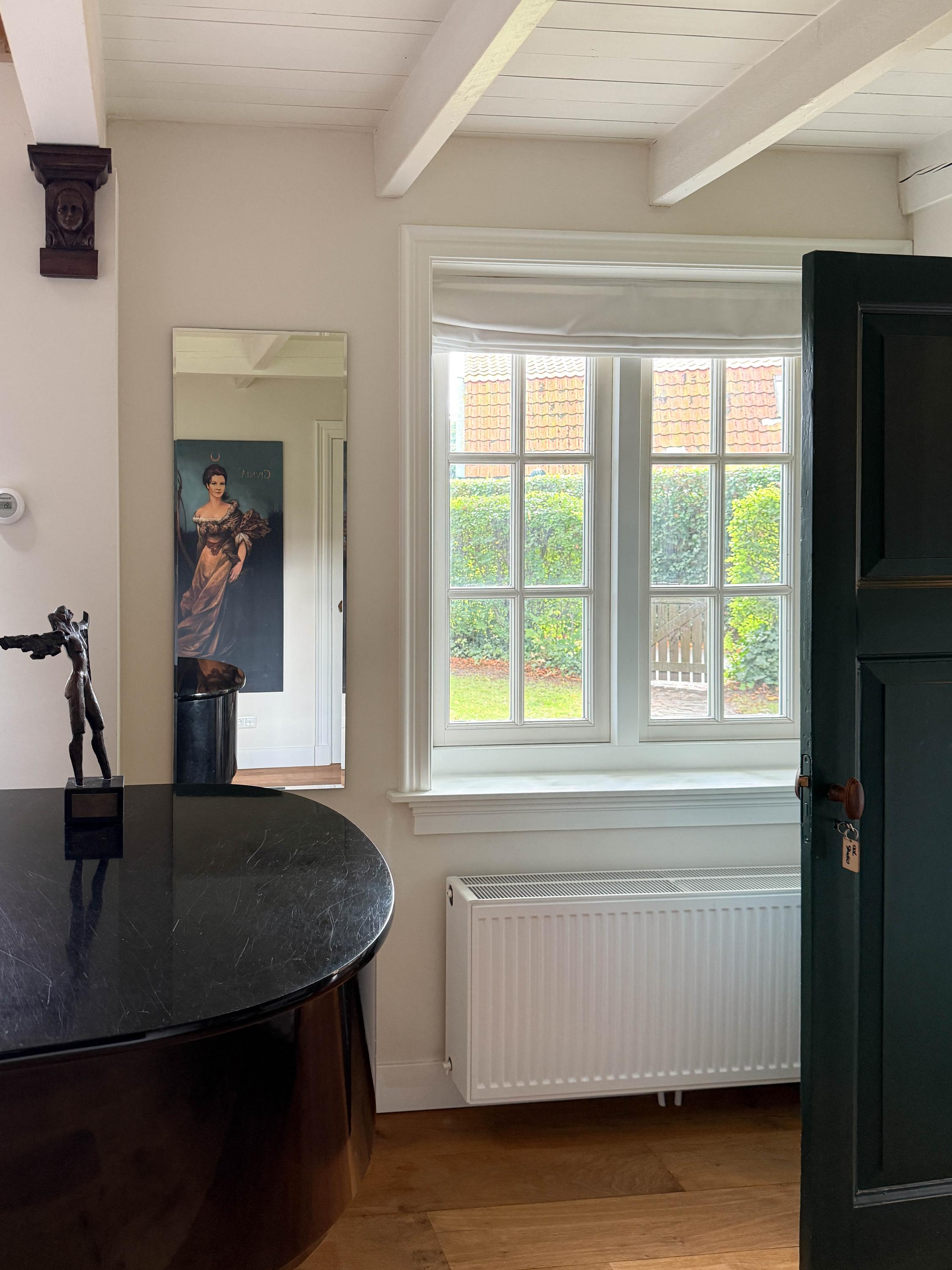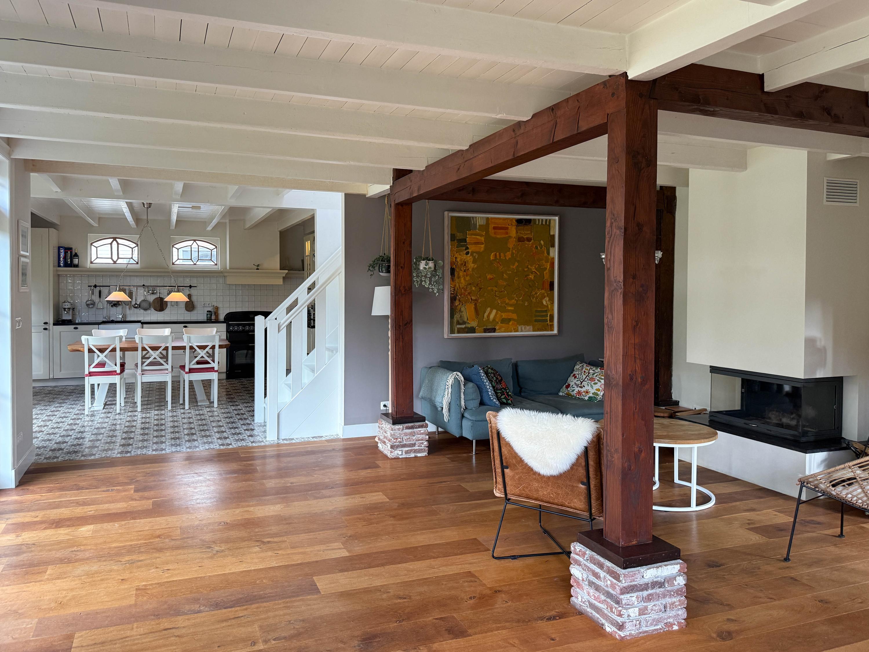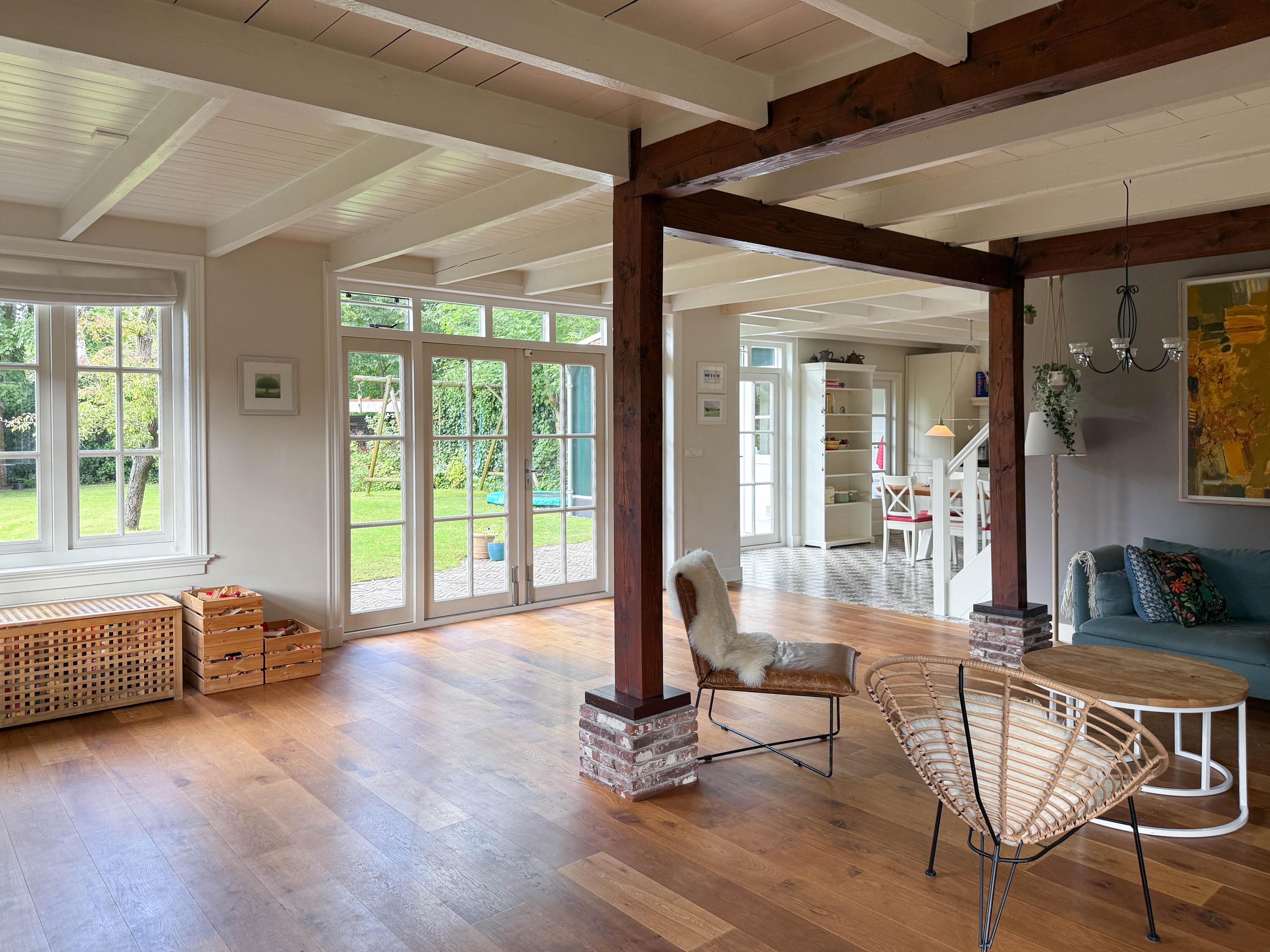 Te koop: Karel de Grotelaan 33, Bergen (NH). Deze volledig gerestaureerde en gemoderniseerde stolpboerderij staat op een van de mooiste lanen van Bergen. De ruime tuin, omgeven door oude appel- en perenbomen, herinnert aan de geschiedenis van het perceel. Bij binnenkomst in de hal met plavuizen ziet u authentieke details. Links vindt u de lichte woonkamer met open haard en openslaande deuren naar de tuin. Het originele boerderij-vierkant vormt het hart van de woning, met een royale woonkeuken vol moderne apparatuur en een bijkeuken. Rechts is er een ruime kamer, momenteel als werkkamer in gebruik, maar ook als vijfde slaapkamer te gebruiken.