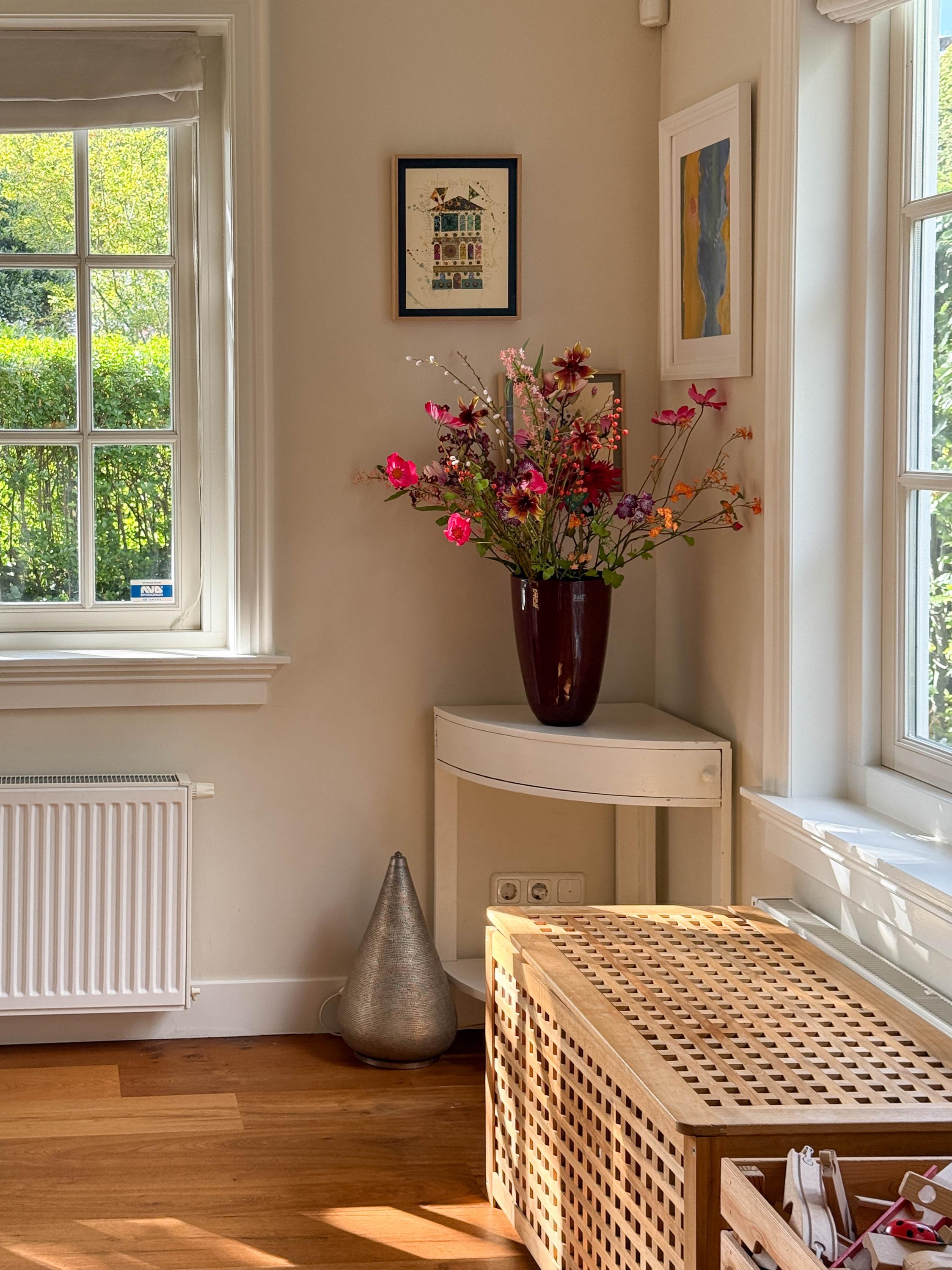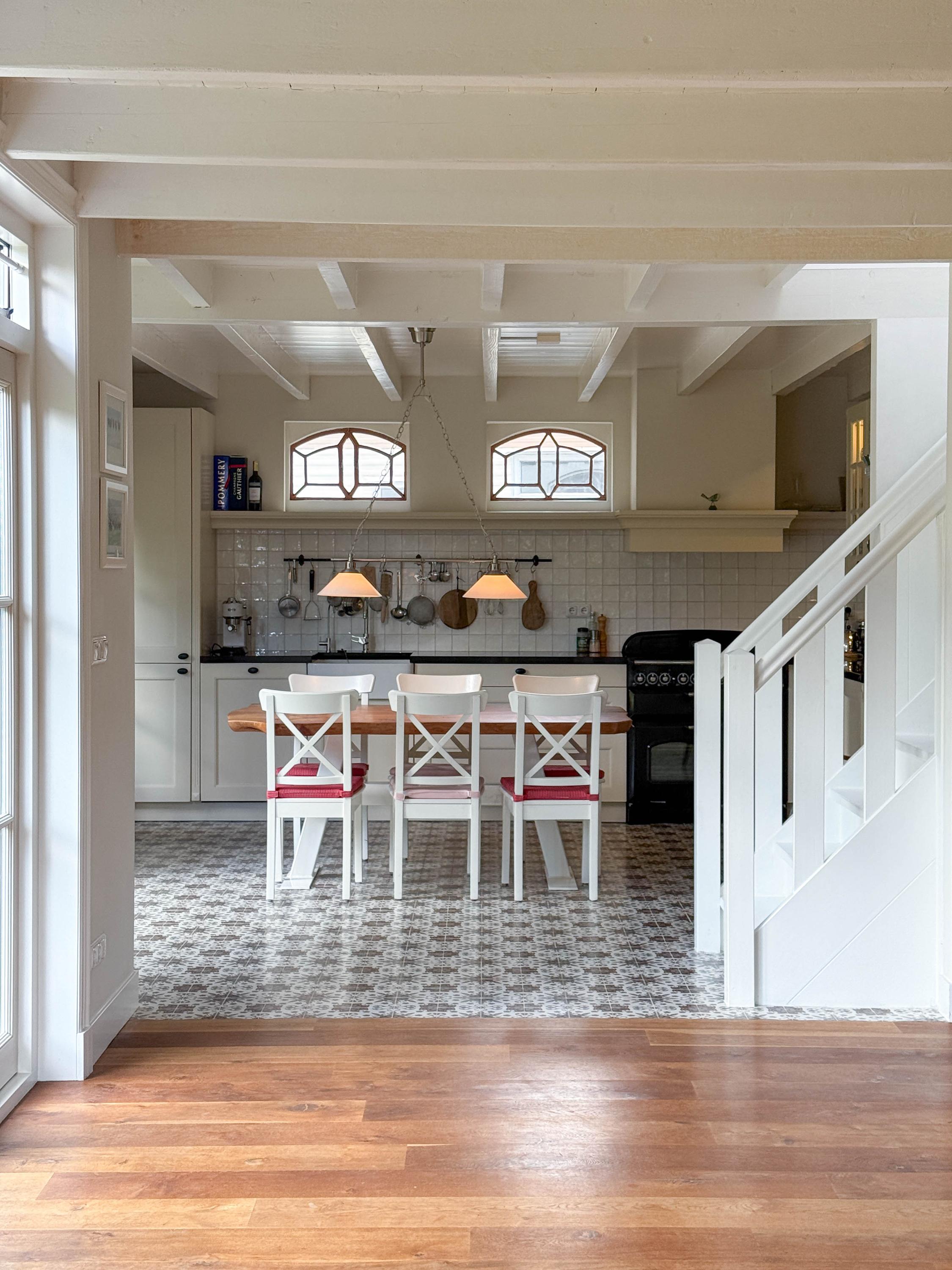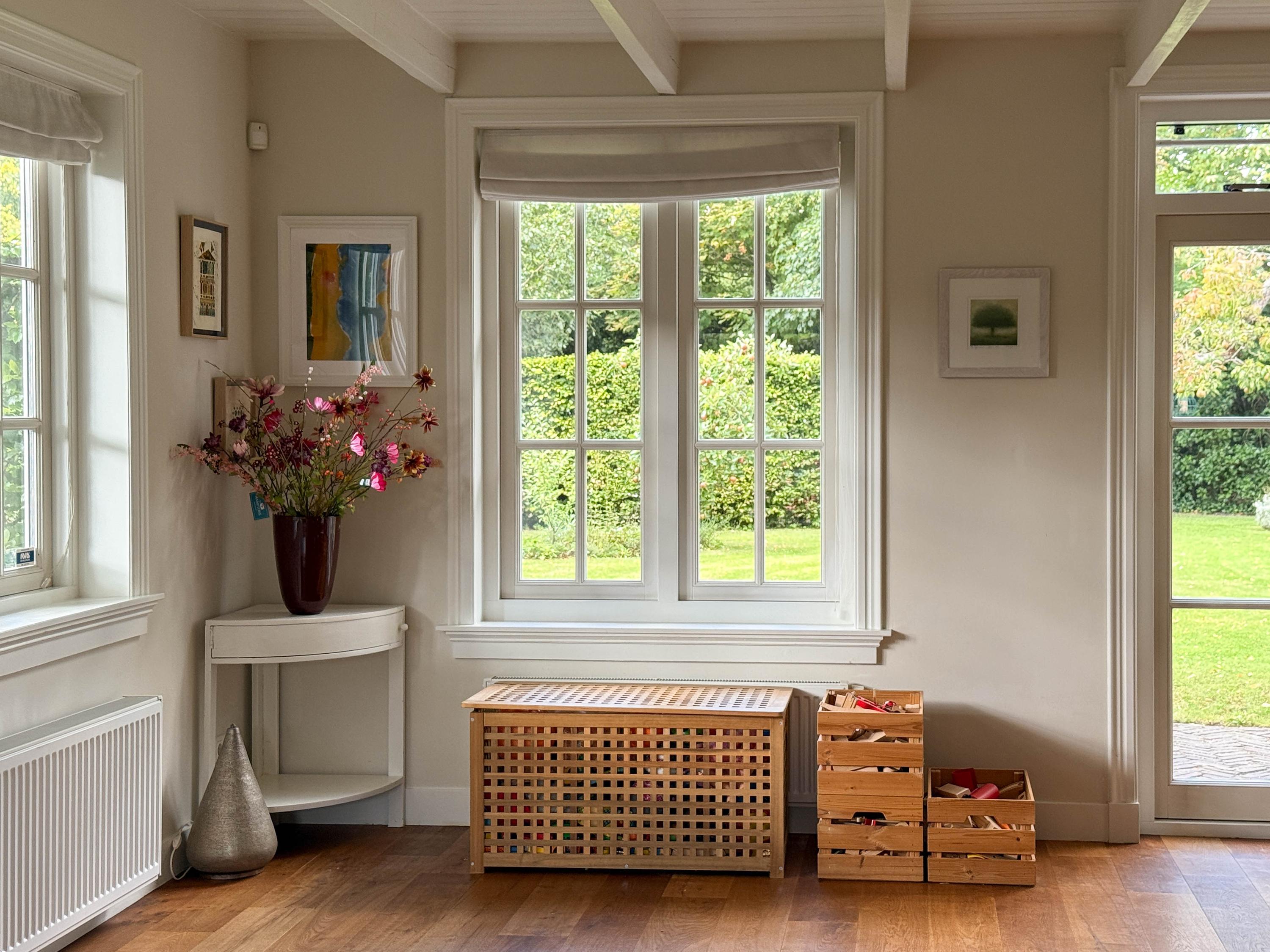 Te koop: Karel de Grotelaan 33, Bergen (NH). Deze volledig gerestaureerde en gemoderniseerde stolpboerderij staat op een van de mooiste lanen van Bergen. De ruime tuin, omgeven door oude appel- en perenbomen, herinnert aan de geschiedenis van het perceel. Bij binnenkomst in de hal met plavuizen ziet u authentieke details. Links vindt u de lichte woonkamer met open haard en openslaande deuren naar de tuin. Het originele boerderij-vierkant vormt het hart van de woning, met een royale woonkeuken vol moderne apparatuur en een bijkeuken. Rechts is er een ruime kamer, momenteel als werkkamer in gebruik, maar ook als vijfde slaapkamer te gebruiken.