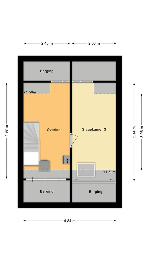 - De tussenwoning heeft een woonoppervlakte van 107 m² en beschikt over 4 kamers, waarvan 3 slaapkamers;